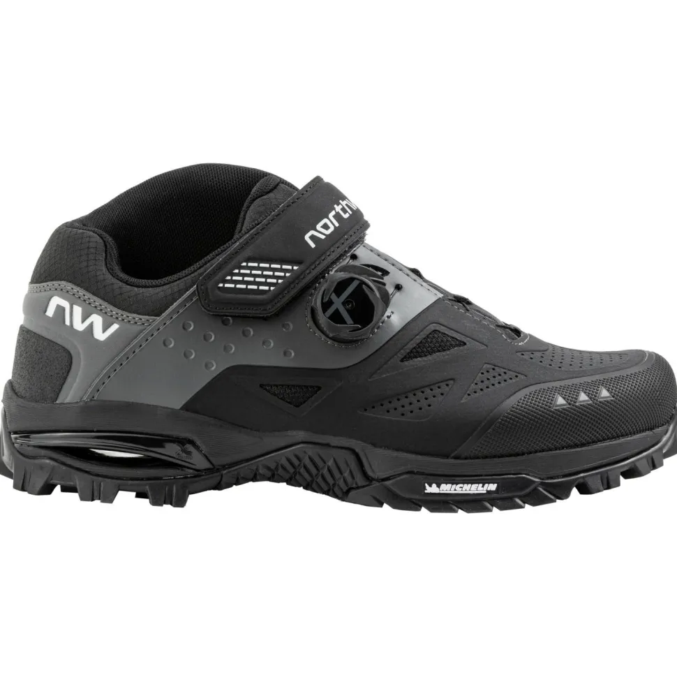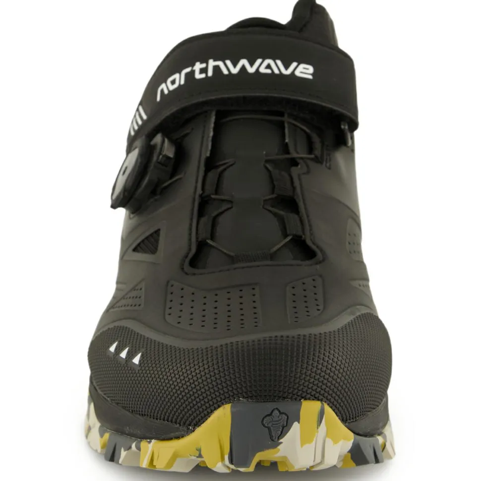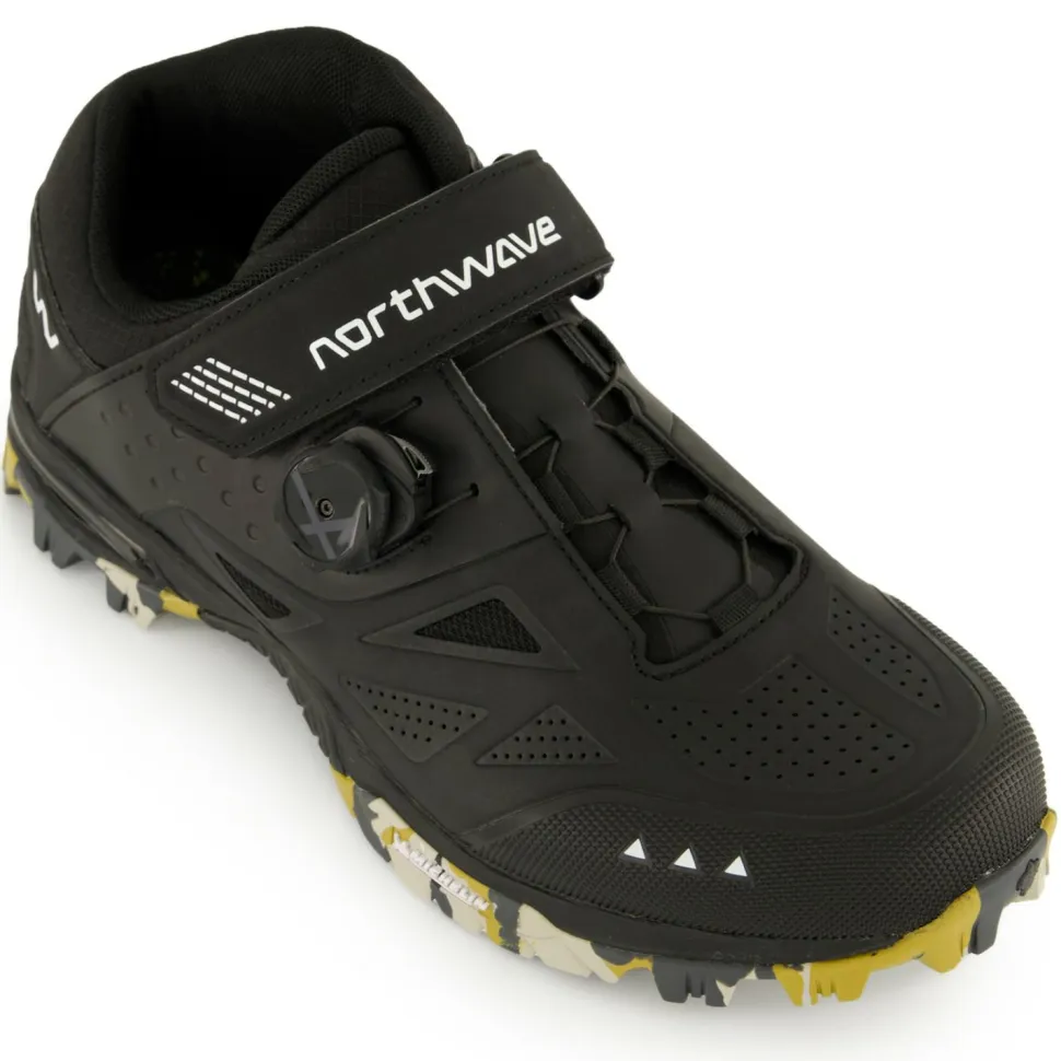 Durch den Einsatz von PU und Verstärkungen aus TPU ist der Northwave Schuh sehr widerstandsfähig und perfekt für den Einsatz im Gelände. Eine dämpfende EVA Zwischensohle erhöht dabei den Komfort beim Laufen und Radfahren. Mit einer Kombination aus SLW3 Drehverschluss und zusätzlichem Klettverschluss sitzen die Füsse stets sicher und komfortabel in Position.