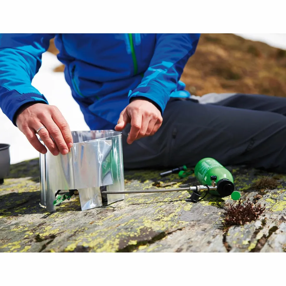 Der Optimus Windschutz für Nova und Nova+ Kocher sorgt für noch schnellere Kochzeiten bei den genannten Outdoor-Kochern. Er schützt die Flamme vor Wind, verkürzt so die Kochzeiten und hilft Brennstoff zu sparen. Er besteht aus Aluminium, ist sehr leicht und nimmt im Gepäck kaum Platz weg!
