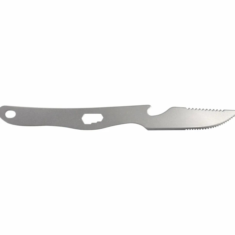 Das Besteckset Titan Recent von Origin Outdoors ist extrem leicht, kompakt und robust. Es besticht durch seine moderne Form und ist zusätzlich noch ausgestattet mit Flaschenöffner, scharfem Messer mit zweiseitiger Schneidefläche, Ringöffnung und Karabiner. Verstaut wird alles im Packsack.