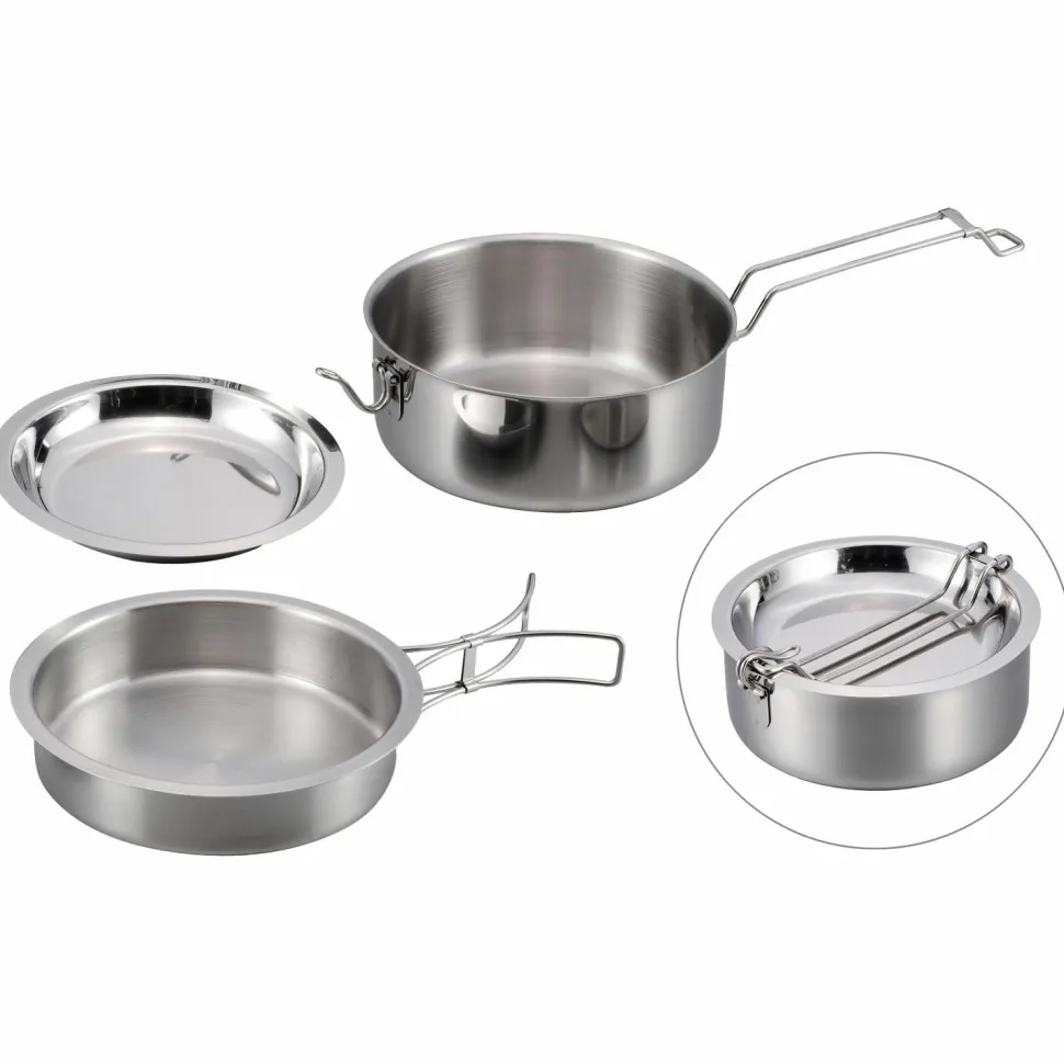 Das Edelstahlkochset sanp-Pack von Origin Outdoors ist ein klassisches Kochset für zwei Personen! Das Set beinhaltet einen Topf, eine Pfanne und einem Teller. Wird die Pfanne nicht gebraucht, kannst Du sie als Topfdeckel verwenden. Mit den klappbaren Griffen lässt sich das Set platzsparend verstauen.