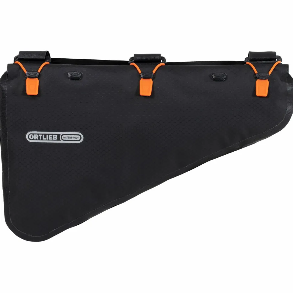 Insgesamt 6 Liter zusätzlichen Stauraum bietet die Frame-Pack Rolltop 6 Fahrradtasche von Ortlieb. Die Rahmentasche aus der Bike Packing Serie ist absolut wasserdicht und schützt auch hervorragend vor Staub und Schmutz. Mit individuell einstellbaren Klettverschluss-Riemen wird die wetterfeste Rahmentasche bequem am Rahmen befestigt und mit dem wasserdichten Rollverschluss verschlossen. Das abriebfeste Nylongewebe mit PU-Beschichtung sorgt dabei für lange Haltbarkeit und Stabilität. Die Frame-Pack Rolltop 4 Fahrradtasche ist auch für die Montage an Fahrradrahmen aus Carbon bestens geeignet.
