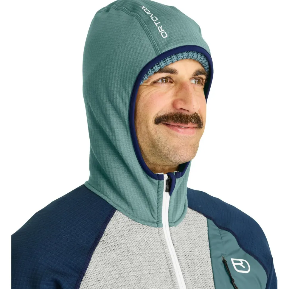 Die Fleece Grid Plus Classic Knit Hoody von Ortovox hält Dich bei rasanten Abfahrten wunderbar warm und trocken! Bei dieser Fleecejacke kommt das warme und atmungsaktive Merino Fleece Grid Plus Fleecematerial von Ortovox zum Einsatz, das dank seiner Gitterstruktur eine hervorragende Isolierleistung bei gleichzeitig geringem Gewicht bietet. Die hautfreundliche Merinowolle verleiht der Jacke ein exzellentes Feuchtigkeitsmanagement und wirkt der Entstehung von unangenehmen Gerüchen entgegen, während die Strickeinsätze aus hochwertiger Swisswool Schurwolle für ein spürbares Plus an Wärme sorgen.