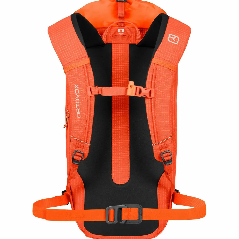 Für lange Touren, wenn es leicht und schnell gehen muss: der Trad Zero 24 Kletterrucksack von Ortovox! Mit nur 570 Gramm ist der alpine Kletterrucksack ein echtes Federgewicht, und dennoch bringt er die Festigkeit und Langlebigkeit für viele raue Felsfahrten mit. Möglich macht es sein robustes 420 D Ripstop-Nylon, das zu 88 Prozent aus recyceltem Material besteht.Anstelle eines Deckelfaches hat der Trad Zero 24 eine leichte, vielseitige und verstaubare Deckel-Lasche, die den Rucksackinhalt schützt und zugleich als Helm- und Seilfixierung fungiert. Besonderen Halt gibt dabei eine Silikonbeschichtung auf der Innenseite, die alles stabil dort hält, wo es sein soll.