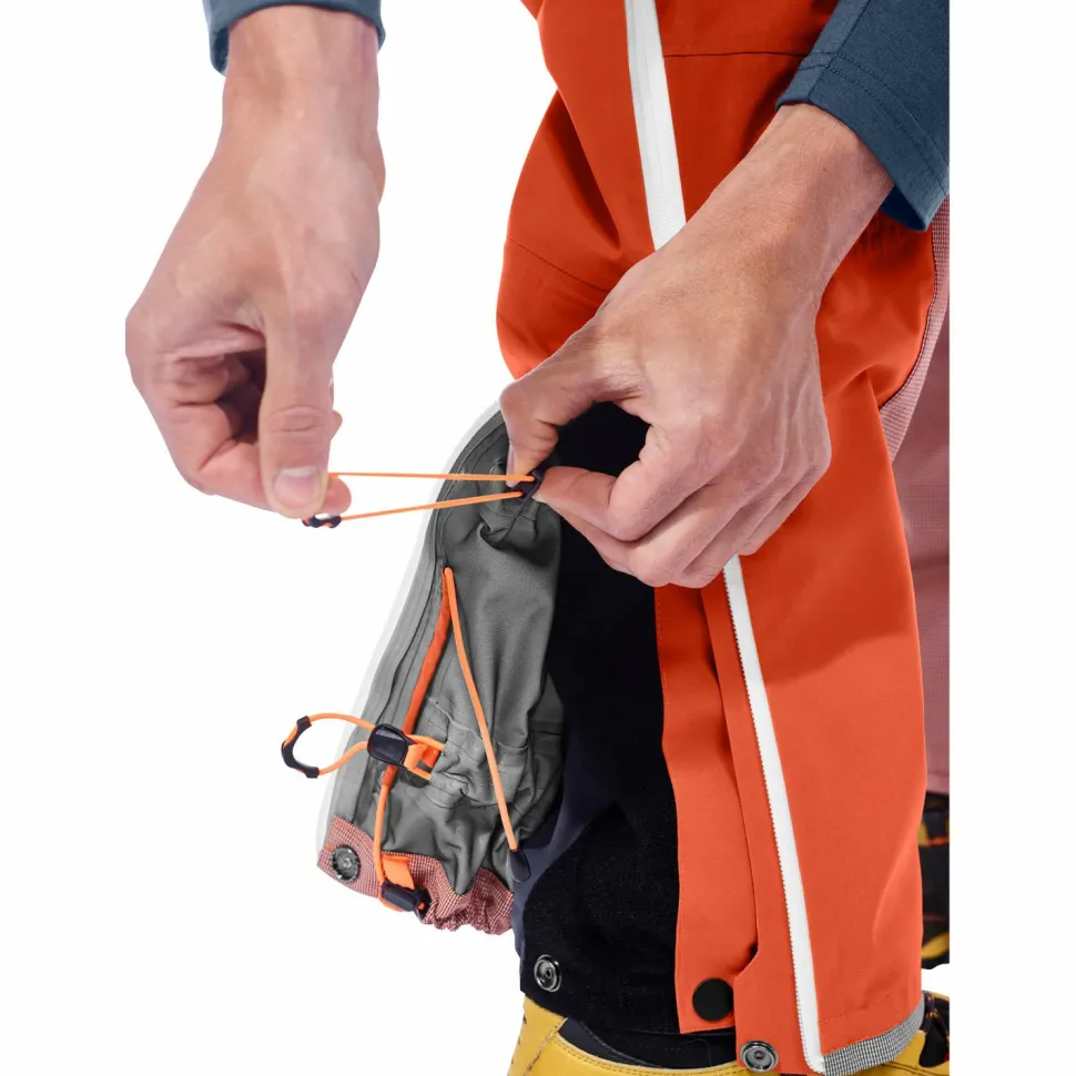Die Regenhose hat neben dem hochwertigen Material auch noch praktische Features zu bieten. Für einen hohen Tragekomfort und eine ideale Passform sind der Hüftbund und die Beinabschlüsse regulierbar. Während der Kantenschutz an den Beinenden für eine höhere Lebensdauer sorgt, bieten die beiden Seitentaschen, die Beintasche sowie die Gesäßtasche Platz für alle wichtigen Kleinigkeiten. Und damit kein kaltes Nass von den Beinenden ins Hoseninnere gelangt, ist die Ortovox Westalpen 3L Pants auch noch mit einem Schneefang ausgestattet. Perfekt!