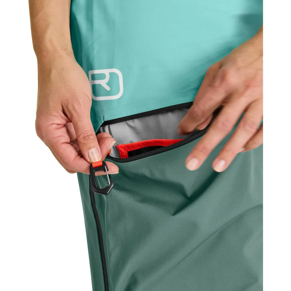 Genau die richtige Wahl für anspruchsvolle Freeride-Abenteuer: die Women’s 3L Ravine Shell Pants von Ortovox! Die Skihose verwendet das dreilagige Merino Deep Shell Hardshellgewebe von Ortovox, das mit der leistungsstarken Dermizax NX Membran ausgestattet ist. Die langlebige und pflegeleichte PU-Membran macht die Hose nicht nur absolut wind- und wasserdicht, sondern bietet gleichzeitig eine exzellente Atmungsaktivität. An den besonders kälteempfindlichen Stellen befinden sich außerdem angenehm weiche Einsätze aus Merinowolle, die für ein Plus an Wärme und Tragekomfort sorgen.