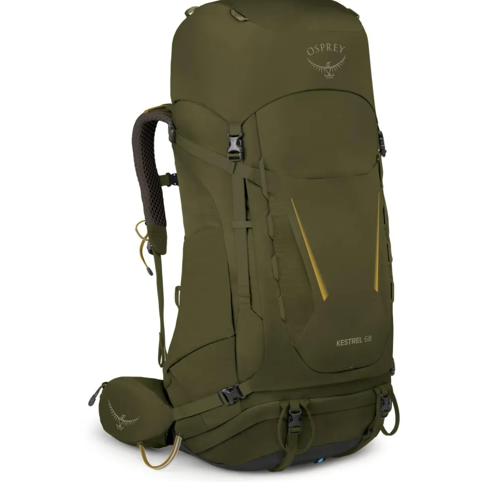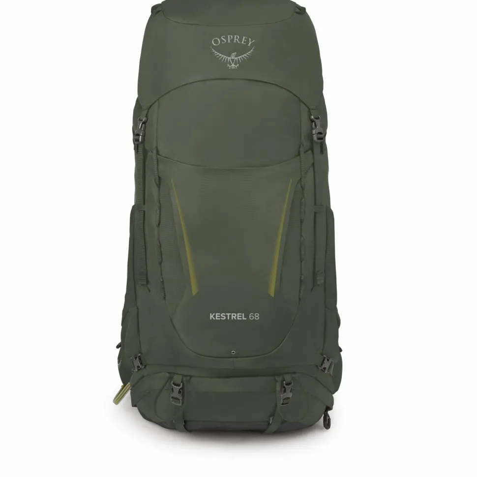 Der Kestrel 68 Trekkingrucksack ist als Toploader konstruiert, kann aber gleichzeitig bequem an der Front geöffnet werden. So lässt sich der Inhalt jederzeit gut erreichen und ohne, dass dafür der Deckel geöffnet werden muss. Osprey stattet den robusten Trekkingrucksack mit einer wasserabweisenden DWR-Behandlung aus und integriert eine Regenhülle, die auch vor Schmutz sehr gut schützt.