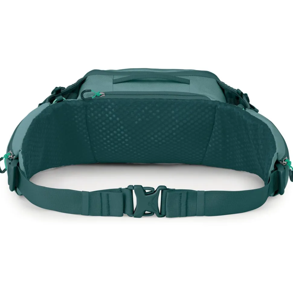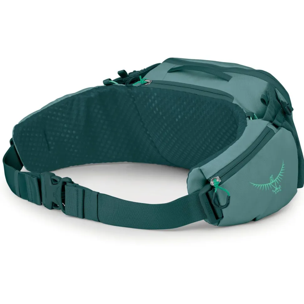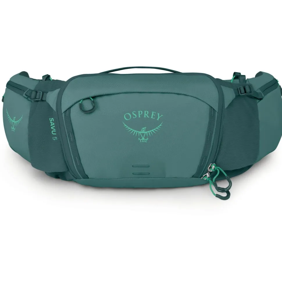 Speziell fürs Radfahren wurde die Savu 5 von Osprey entworfen. Diese Hüfttasche bietet Dir Platz für allerlei Utensilien, die unterwegs schnell zur Hand sein sollen. Darüber hinaus sitzt sie aufgrund des breiten Hüftgurts sehr angenehm und wirkt auch bei rasanter Fahrt nicht störend. Zusätzlich ist der Hüftgurt atmungsaktiv und kann entstehende Feuchtigkeit problemlos an die Umwelt abgeben. Die Savu 5 verfügt über mehrere Fächer. Hierdurch kannst Du den Inhalt gut strukturieren. Praktisch sind dabei auch die beiden Meshfächer, die Dir die Mitnahme zusätzlicher Flaschen ermöglichen.
