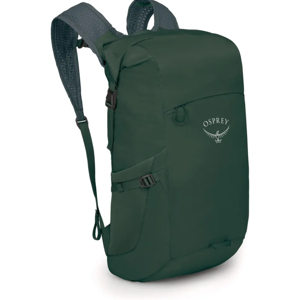 Der Ultralight Dry Pack 20 Daypack von Osprey ist besonders leicht und schützt seinen Inhalt mit einer wasserdichten Beschichtung, versiegelten Nähten und einem wetterfesten Rollverschluss. Dabei wiegt der komplette Rucksack mit Schulterträgern und Seitentaschen nur unglaubliche 194 g.