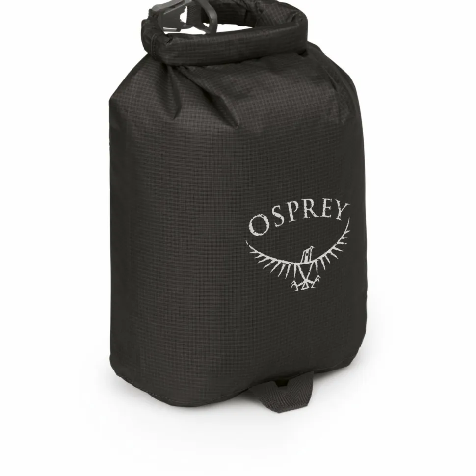 Kleinere Accessoires, die besonderen Schutz vor Schmutz und Nässe benötigen, sind im Ultralight Dry Sack 3 Packsack von Osprey bestens geschützt. Der ultraleichte Packsack wiegt lediglich 28 g und wird mit einem zuverlässigen Rollverschluss sicher verschlossen.