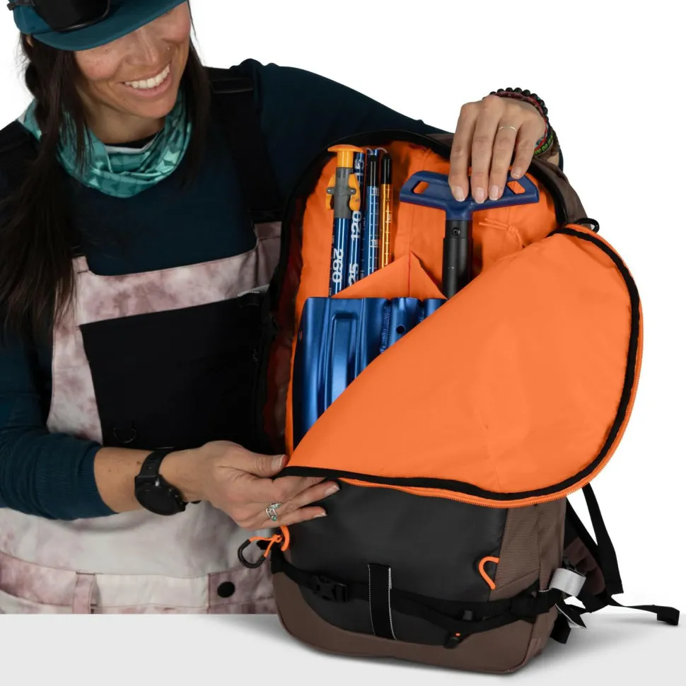 Über die Rückenöffnung erreichst Du das Hauptfach bequem. Das Frontfach mit Organisationsstruktur ist speziell für Lawinensicherheitsausrüstung ausgelegt. Praktische Features wie A-Frame- oder diagonale Skibefestigung, vertikale oder horizontale Snowboardhalterung, sichere Eisgerätebefestigung und faltbarer Helmhalter bieten maximale Flexibilität.