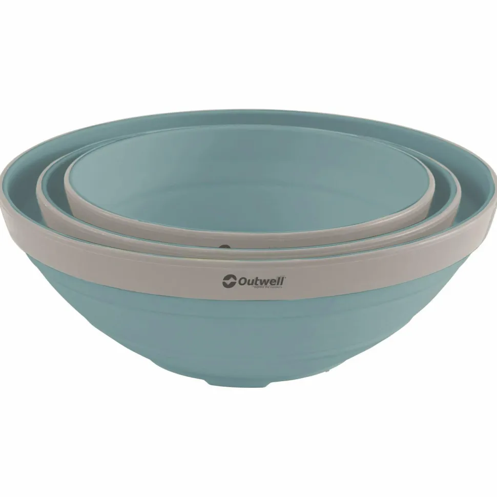 Platzsparend ist das Collaps Bowl Set von Outwell! Die drei Schüsseln lassen sich ineinander stapeln oder falten, damit Du sie platzsparend unterbringen kannst. Sie bestehen aus bruchfestem, langlebigem Material. Mit den drei verschiedenen Größen hast Du immer die richtige Schüssel zur Hand, egal ob Du Salat, Obst oder Nudeln zubereiten willst. Ideal für die Campingküche!