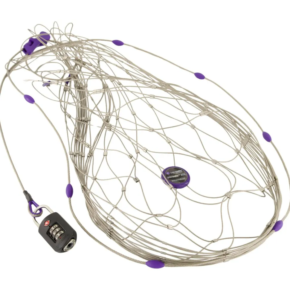 Das Pacsafe 85 L ist eine clevere und sehr umsichtige Lösung für Situationen, in denen man beim Reisen sein Gepäck nicht immer im Auge haben kann. Ob am Strand, beim Einkaufen oder auf Tagesausflügen, bei denen man mit dem leichten Daypack unterwegs ist: das wichtige, große Gepäck ist in dem Edelstahlnetz vor Diebstahl geschützt. Es besteht aus flexiblen und dennoch hochfesten Edelstahlfäden und wird einfach über das Gepäck gestülpt. Im Anschluss daran wird das Netz samt dem Rucksack, Koffer oder der Tasche einfach an einem fest verankerten Gegenstand angeschlossen. Dafür bieten sich Pfosten und Bäume, aber auch der Heizungskörper im Hostelzimmer an. Das Pacsafe 85 L lässt sich in seiner Größe auf Gepäckstücke mit einem Volumen von 55 l bis 85 l anpassen und kommt mit einem praktischen Aufbewahrungsbeutel für den Transport und einem stabilen Schloss.