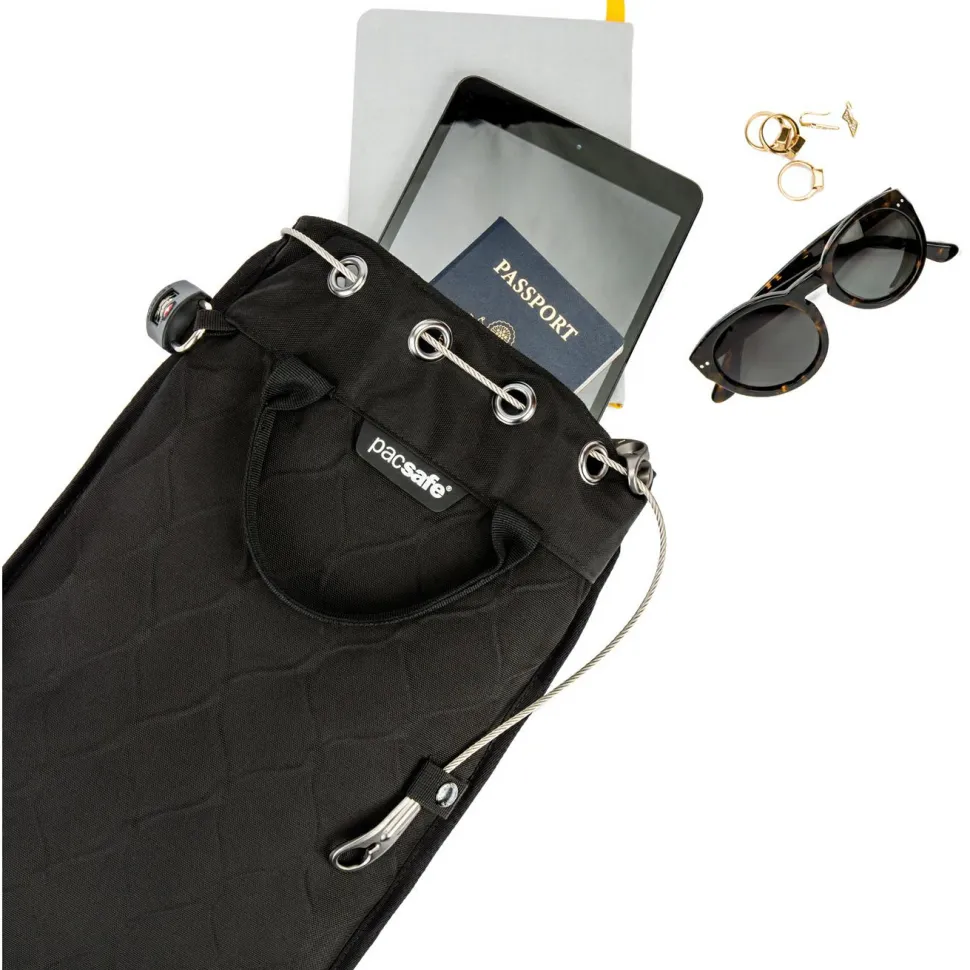 Mit dem Travelsafe 12 L GII von Pacsafe sind Wertgegenstände wie zum Beispiel die Reisedokumente, das Laptop und Kompaktkameras absolut sicher verstaut. Der abschließbare Tragesafe braucht dafür einfach nur an einen festen Gegenstand angeschlossen zu werden und schon kann man die ganze Sache entspannter angehen. Das wasserabweisende Außenmaterial besteht aus robustem Gewebe, in das ein hochfestes Edelstahlnetz eingearbeitet ist. Daher kann der Travelsafe 12 L GII von Dieben auch nicht einfach aufgeschnitten werden, um an den wertvollen Inhalt zu gelangen. Die Innenseite des Tragesafe ist mit weichem Fleecegewebe ausgekleidet, so gibt es keine Kratzer und der Inhalt bleibt leicht erkennbar. Der Pacsafe 12 L GII hat ein Volumen von 12 Litern und ist daher groß genug, um auch ein 15 Zoll Laptop aufzunehmen. Der Tragesafe ist ideal geeignet zum Backpacking, auf Reisen oder für den Campingurlaub!