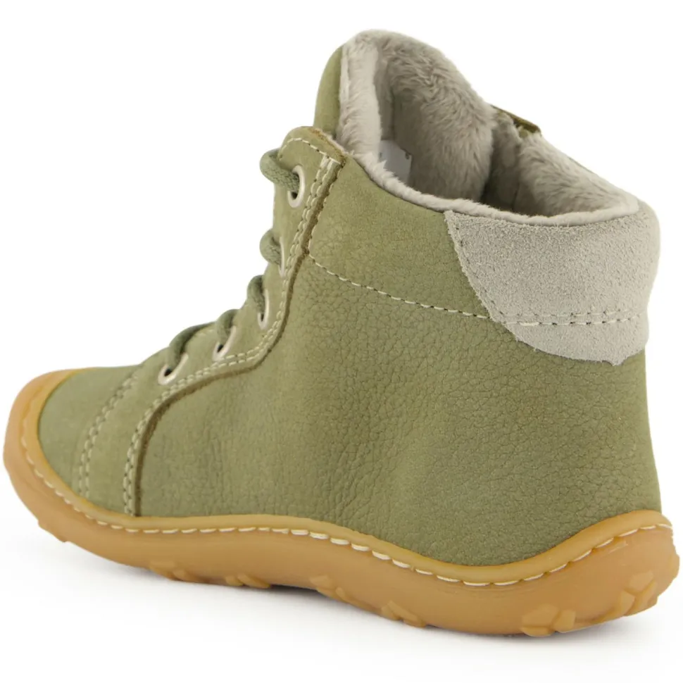Dieser Klassiker unter den Kleinkinder- und Lauflernschuhen von Pepino by Ricosta sieht nicht nur klasse aus, er hat es auch echt in sich: gefertigt ist der Kid´s Georgie aus ökologisch gegerbtem, terracare-zertifiziertem Leder aus Deutschland und innen ist er mit einem flauschigen Warmfutter ausgekleidet. Damit sind die Kleinen Spaziergänger auch an kalten Tagen bestens ausgestattet. Die weiche und flexible Sohle aus Naturkautschuk trägt zum bequemen Gesamtpaket maßgeblich bei, sorgt aber auch für ausreichend Grip auf verschiedensten Untergründen. Die weiche Sohle erleichtert den kleinen Lauflernern außerdem den Übergang zum Tragen von richtigen Schuhen.