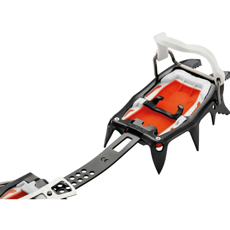 Gegen die Bildung von Schneeklumpen sind die Sarken Steigeisen mit einer Antistollplatte ausgestattet. Die Anordnung der Zacken ermöglicht ein sicheres Gehen und guten Halt in jedem Eis. Die Steigeisen selbst sind aus besonders langlebigem Stahl hergestellt.
