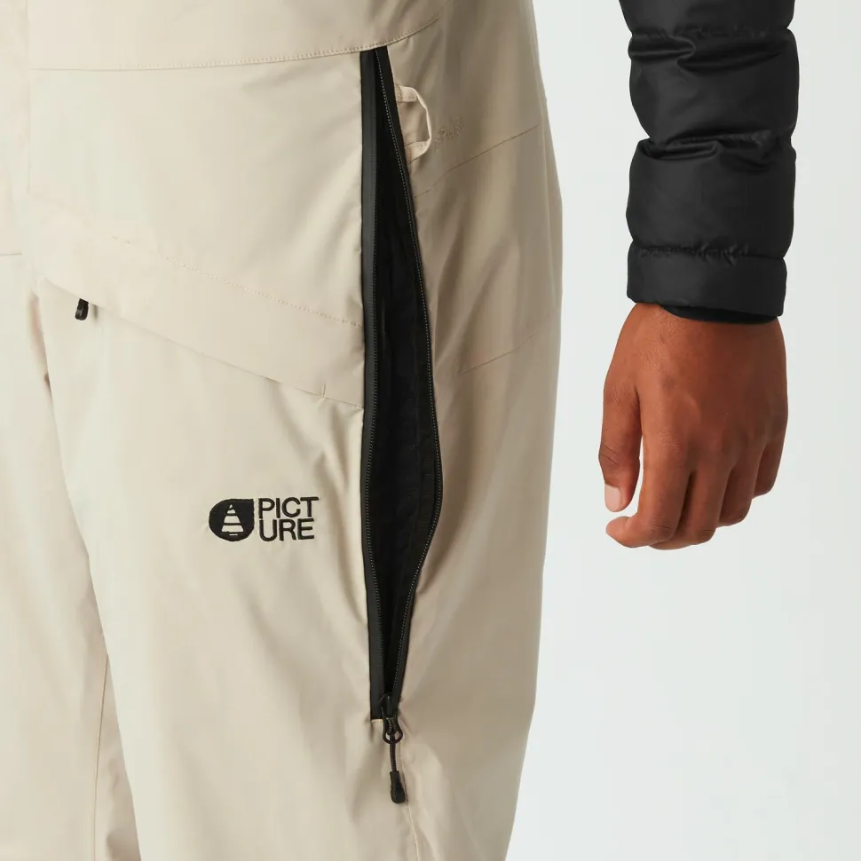 Praktische Details machen den Unterschied: Der durchgehende Front-Reißverschluss erleichtert das An- und Ausziehen, während seitliche Reißverschlüsse an den Oberschenkeln gezielte Belüftung ermöglichen – perfekt, wenn es beim Aufstieg mal schweißtreibend wird. Zwei Reißverschluss-Fronttaschen bieten sicheren Platz für Kleinigkeiten, Hosenträger sorgen für optimalen Sitz und integrierte Gamaschen halten Schnee draußen.