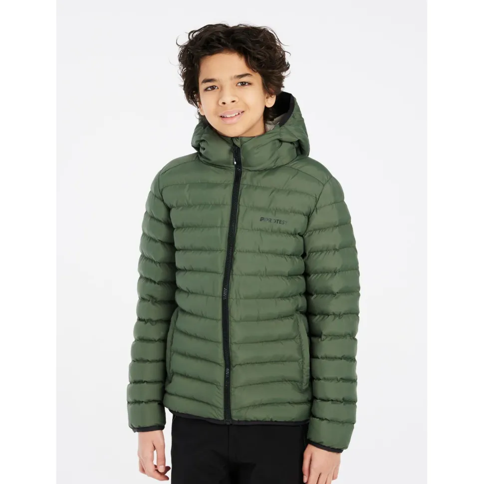 Mit der Kid’s PRTYates Outerwear Pufferjacket von Protest gibt’s eine wärmende Jacke für kalte Tage. Diese Kunstfaserjacke punktet vor allem durch ihren hohen Komfort und den bequemen Schnitt. Das Außenmaterial ist darüber hinaus wasserabweisend, wodurch leichter Niederschlag kein Problem darstellt. Im Inneren der Jacke sorgt außerdem eine Kunstfaserfüllung dafür, dass die Körperwärme zuverlässig gehalten wird. Praktisch ist dabei auch die ebenfalls wattierte Kapuze, die bei Bedarf für zusätzlichen Schutz sorgt.