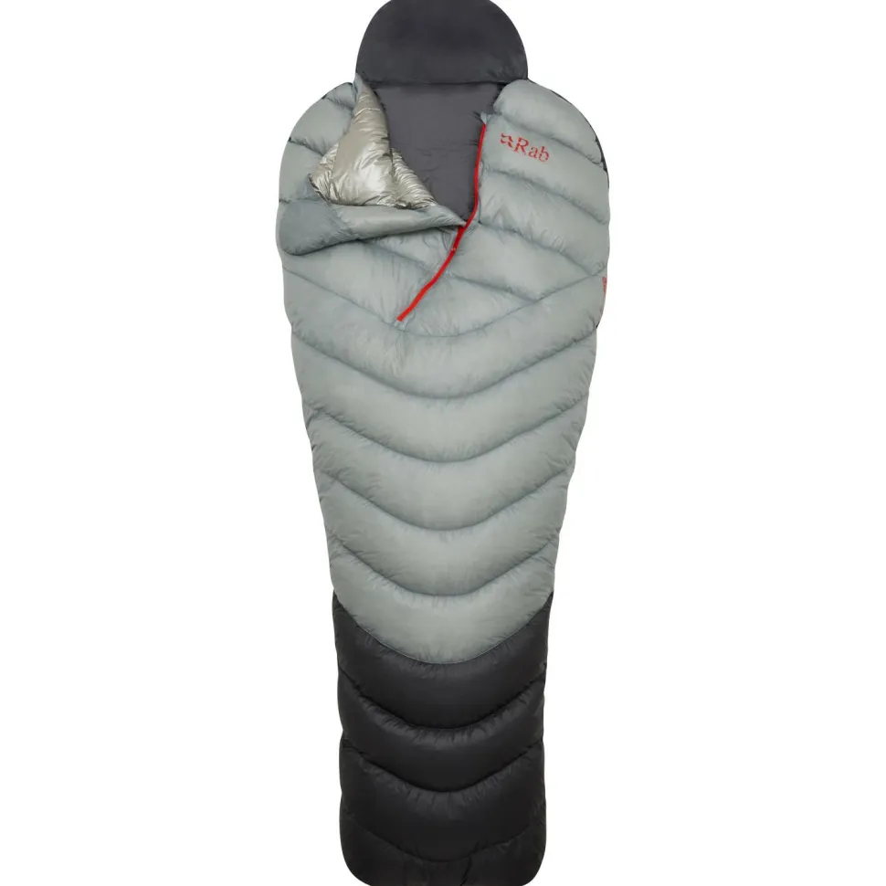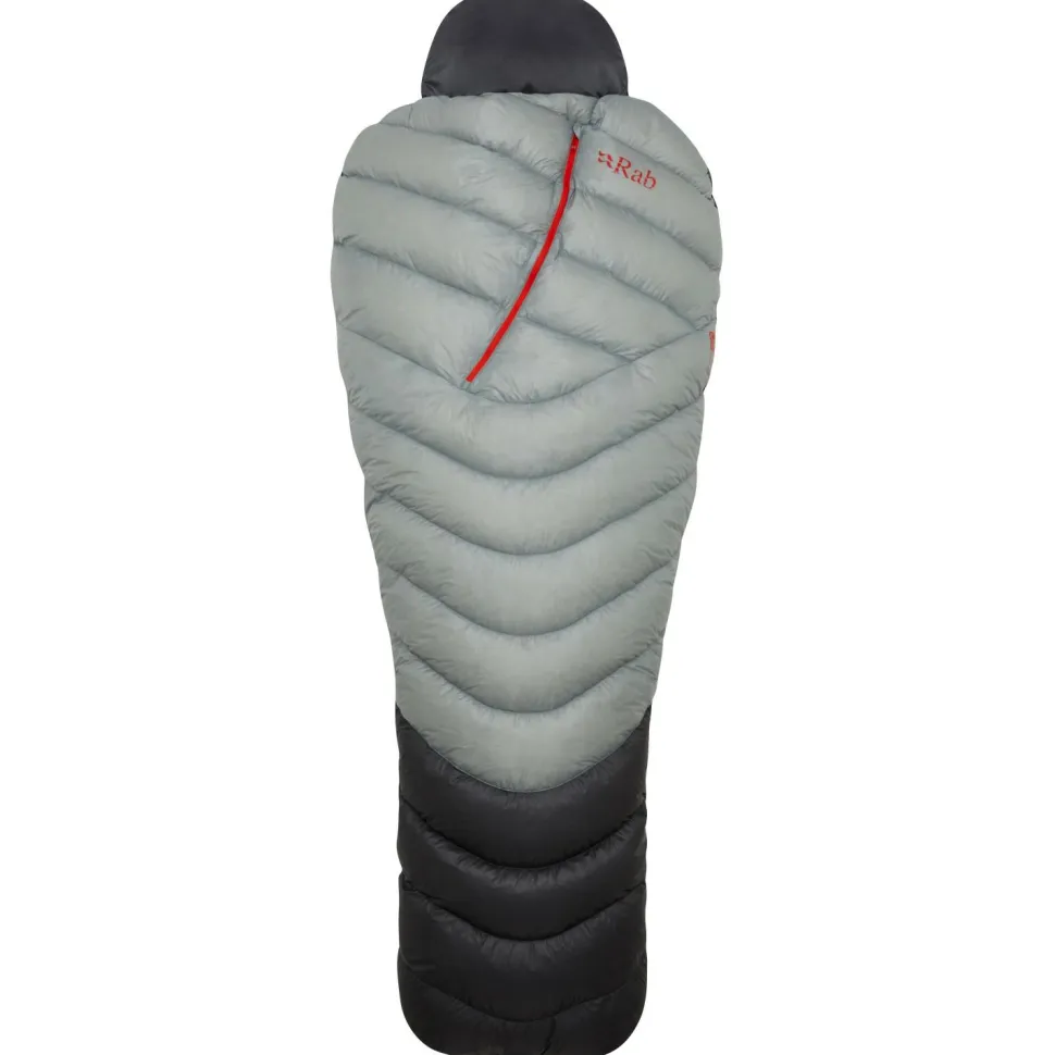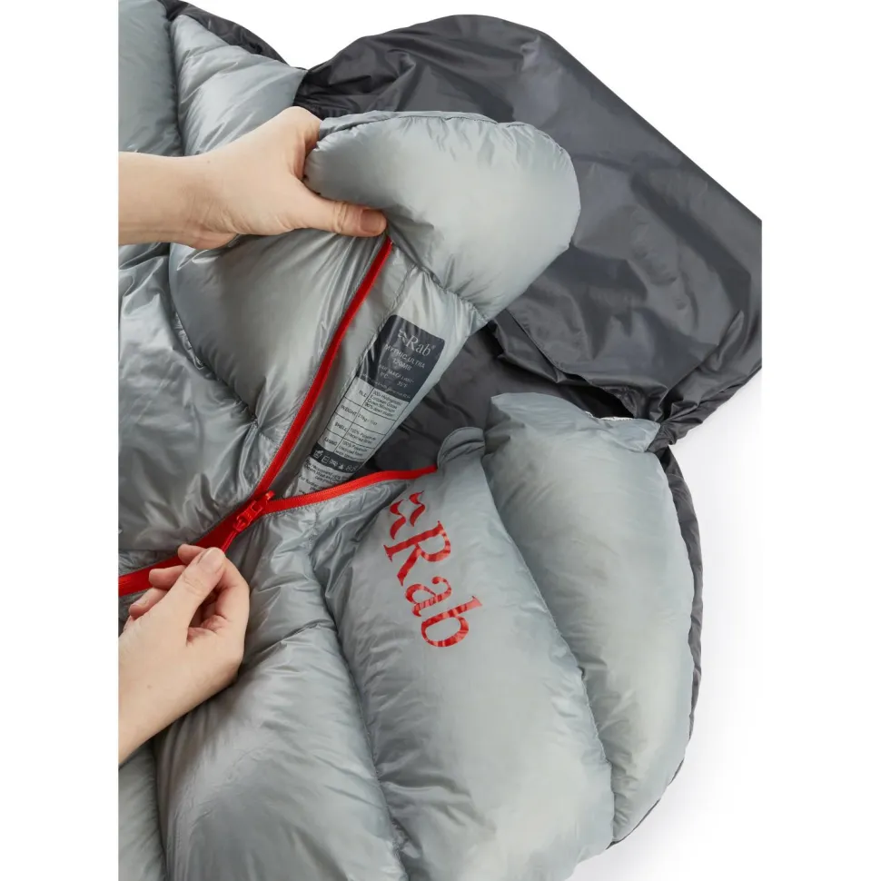 Fällt kaum ins Gewicht, der Daunenschlafsack Mythic Ultra 120 Modular von Rab! Die hochwertige Daunenfüllung ist leicht und wärmt zuverlässig. Zudem ist der Schlafsack atmungsaktiv und wasserabweisend. Er punktet mit einem idealen Gewicht zu Wärme Verhältnis.