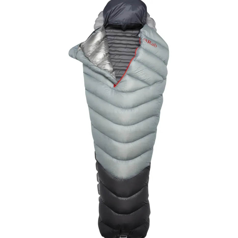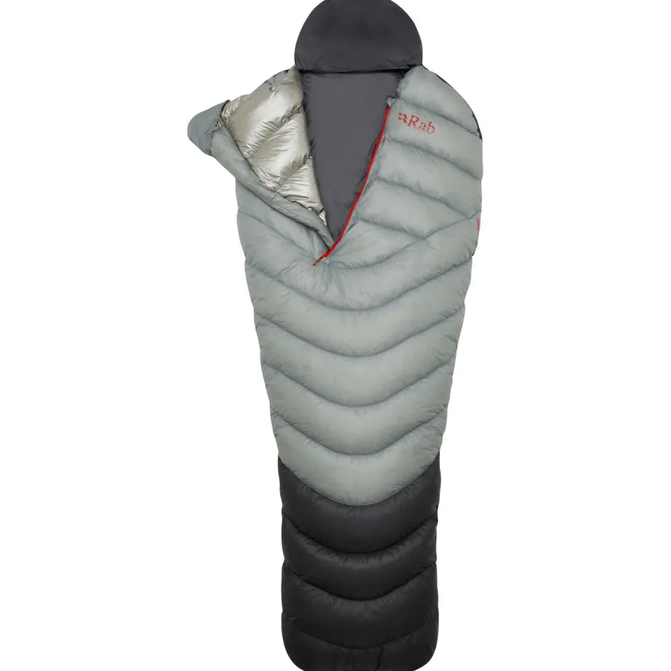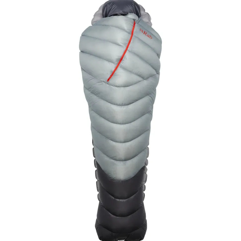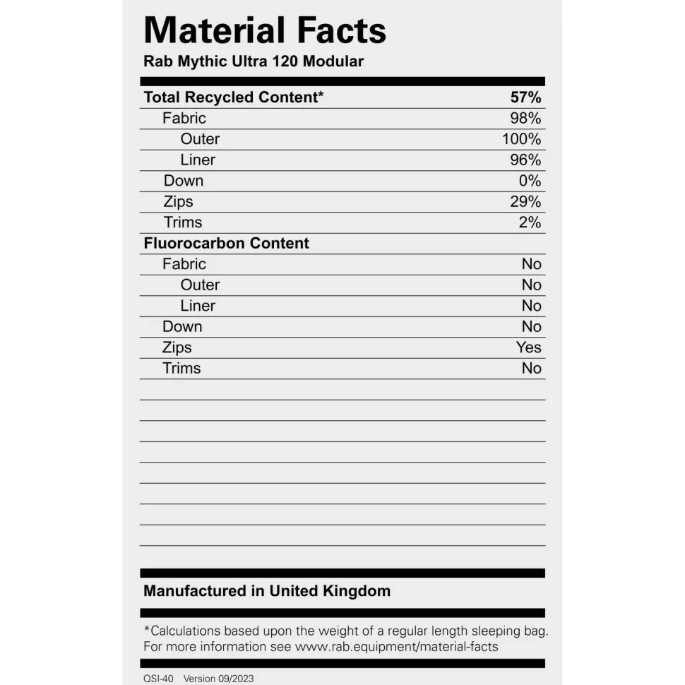 Fällt kaum ins Gewicht, der Daunenschlafsack Mythic Ultra 120 Modular von Rab! Die hochwertige Daunenfüllung ist leicht und wärmt zuverlässig. Zudem ist der Schlafsack atmungsaktiv und wasserabweisend. Er punktet mit einem idealen Gewicht zu Wärme Verhältnis.