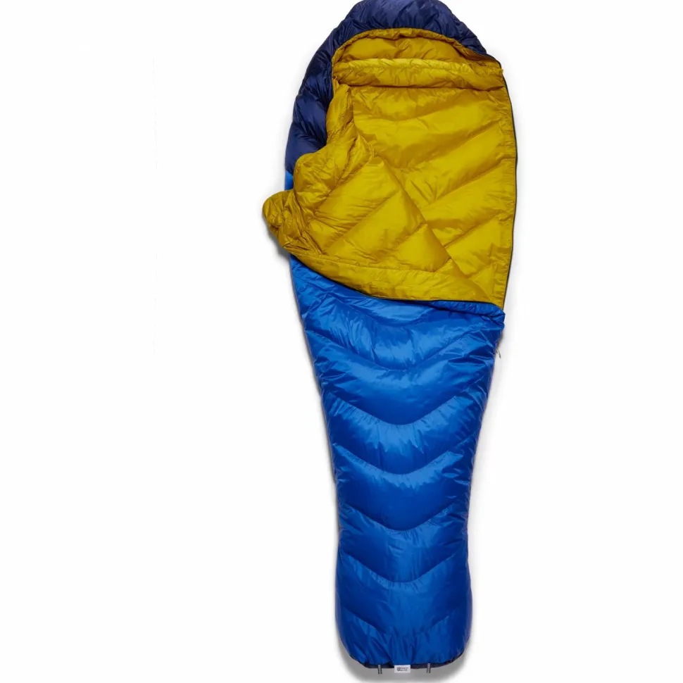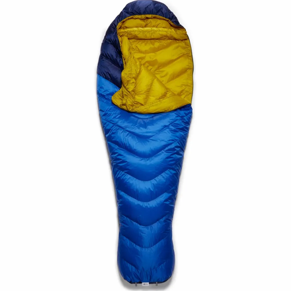 Dank Pertex Quantum ist das Außenmaterial robust und wasserabweisend. Die Daunenfüllung mit hoher Bauschkraft bietet einen exzellenten Wärmekomfort, ohne negativ ins Gewicht zu fallen. Trapezförmige Daunenkammern geben Dir Bewegungsfreiheit und verhindern Kältebrücken. Der verstellbare Wärmekragen verhindert den Wärmeverlust effektiv. Die geräumige Fußbox erlaubt Dir eine gemütliche Schlafposition. In der Innentasche bringst Du Wertsachen sicher unter. Ein komfortabler Partner für sommerliche Nächte!