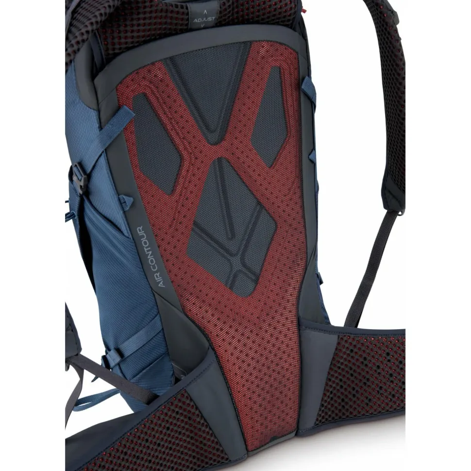 Dank verstellbarer Rückenlänge, Hüftgurt mit Zipper-Taschen und großen Mesh-Fächern hast Du schnellen Zugriff auf Snacks, Ausrüstung oder Wertsachen. Die integrierte Regenhülle schützt bei wechselhaftem Wetter, während die Stockhalterung mit Bungee-System Deine Ausrüstung sicher fixiert.