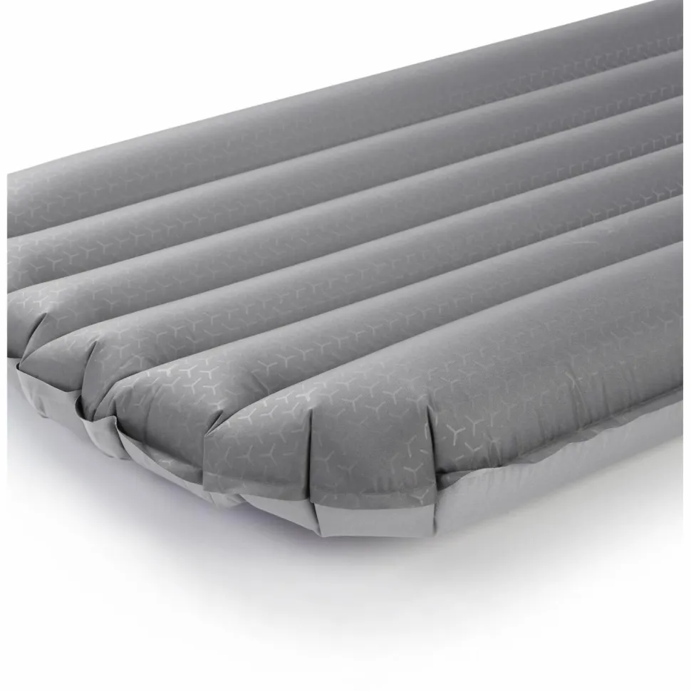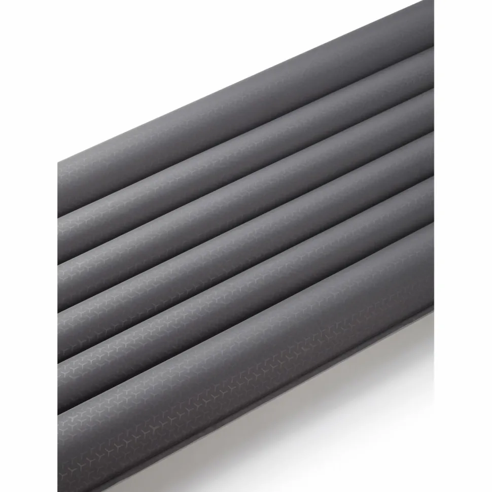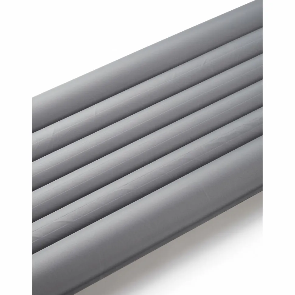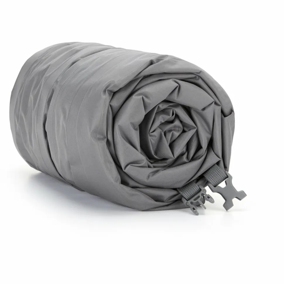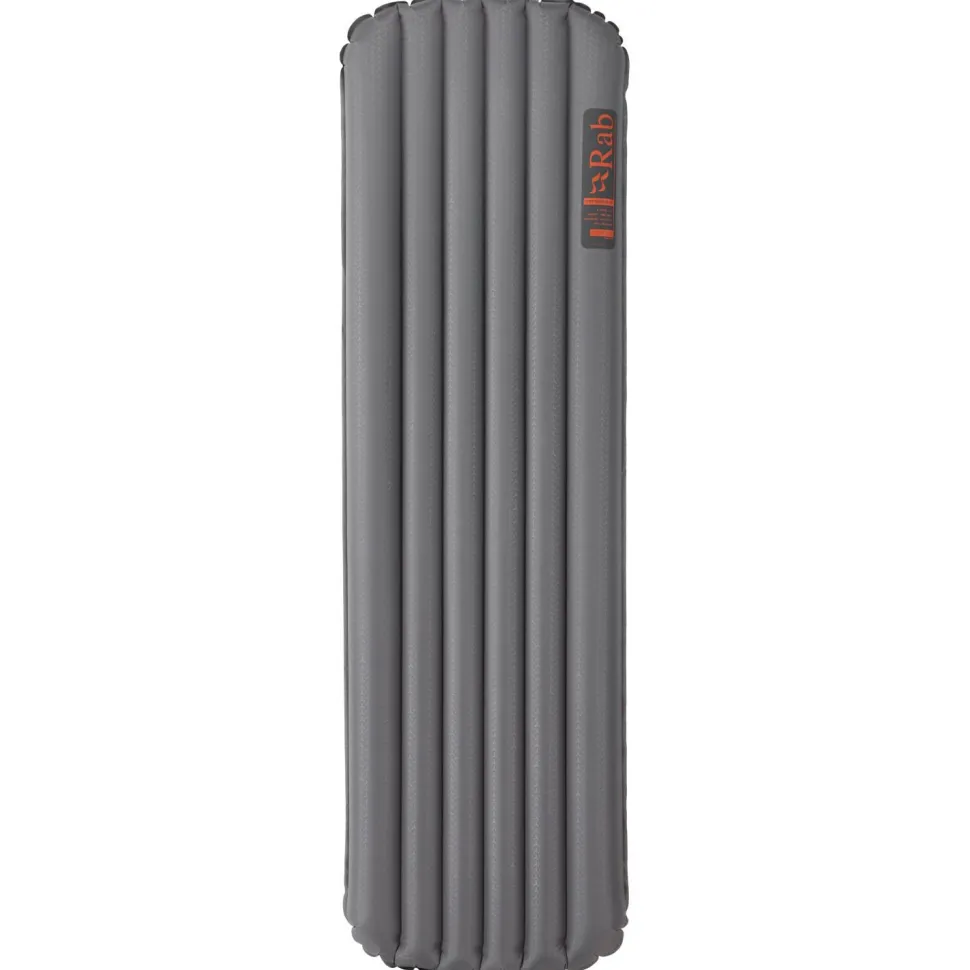 Damit Du nicht auskühlst, wenn nachts die Temperaturen fallen, benutzt Rab eine Stratus-R-Isolation aus recyceltem Polyester. Diese zeichnet sich durch eine exzellente Wärmedämmung aus. Mit einem R-Wert von 5,5 hält sie Dich bis zu Temperaturen von -5 Grad Celsius warm. Das Außenmaterial ist ebenfalls aus Polyester. Es ist robust und gleichzeitig leicht. Ohne Luftfüllung lässt sich die Matte gut komprimieren und verstauen. Daher eignet sich die Matte bestens für Unternehmungen mit viel Gepäck.