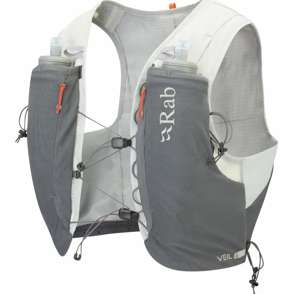 Der Veil 6 von Rab begleitet Dich auf Deinen größten Herausforderungen. Er ist ein Trailrunningrucksack in Westenform mit einem Gesamtvolumen von sechs Litern. In ihm verstaust Du nicht nur Proviant, Smartphone und Erste-Hilfe-Set. Er versorgt Dich darüber hinaus dank eines Rückenfachs für eine 2l-Trinkblase und zwei im Lieferumfang inbegriffener 500ml-Wasserbeutel unterwegs mit Flüssigkeit.