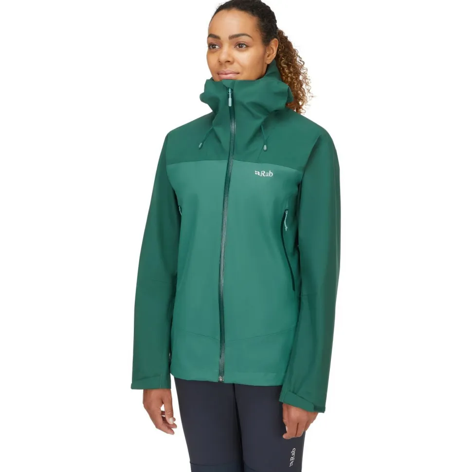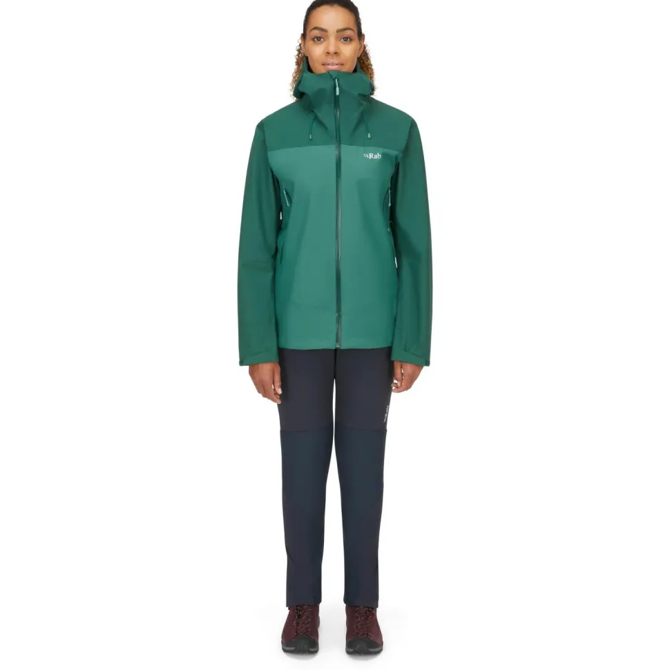 Die Wanderjacke besteht aus Pertex Shield Revolve. Das dreilagige Funktionsgewebe ist atmungsaktiv, wind- und wasserdicht. Feuchtigkeit wird beim Wandern rasch von der Haut nach außen hin abtransportiert. Bei der Herstellung kommen nur Fasern aus recyceltem Polyester zum Einsatz. Eine pfc-freie DWR-Imprägnierung schützt die Rab Women’s Arc Eco Jacket gegen Durchfeuchtung.
