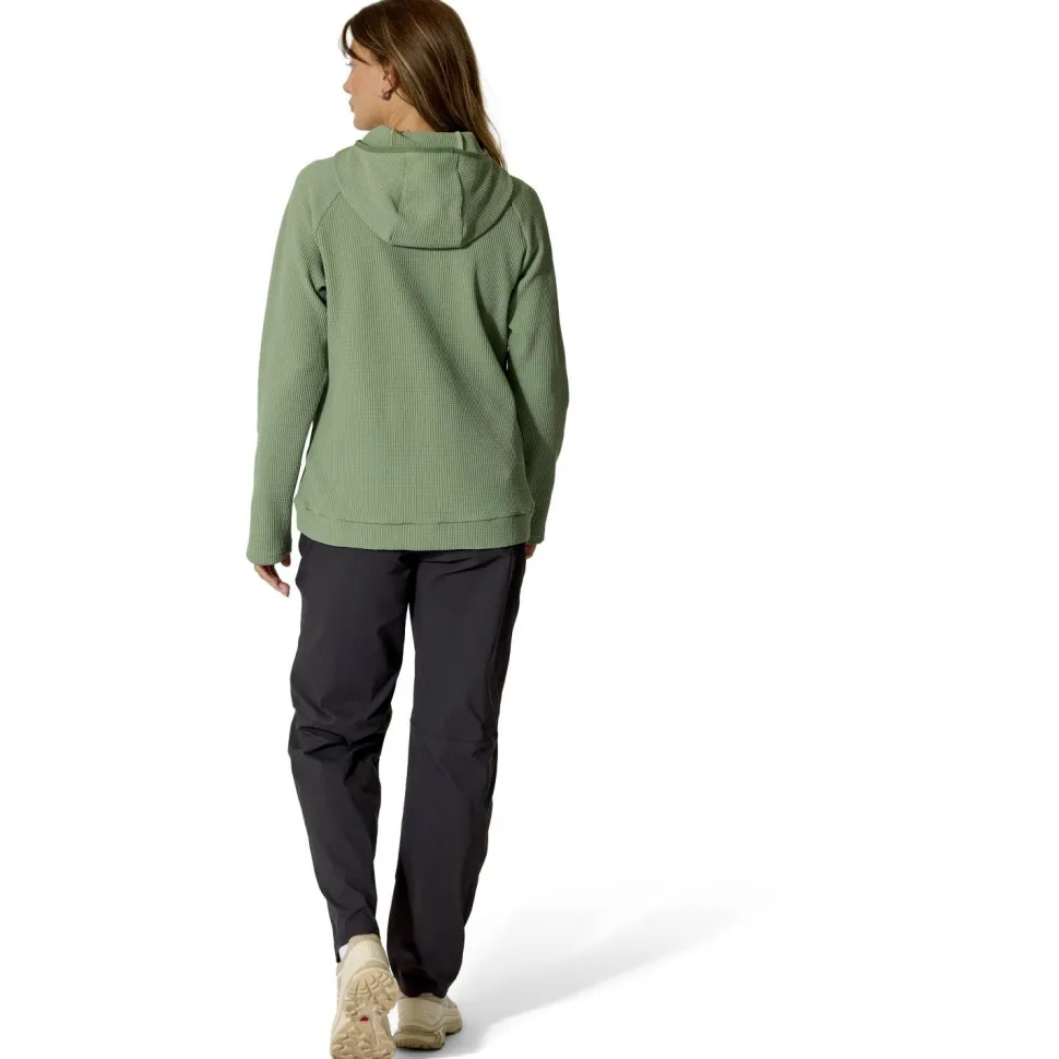 Der Women’s Hepton Pullover Hoody von Rab ist für aktive sportliche Einsätze gemacht und unterstützt Dich neben einem angenehm weichen Tragegefühl mit atmungsaktiven Eigenschaften. Die weiche Kapuze des Pullovers kann bei Bedarf über den empfindlichen Kopfbereich gezogen werden und wärmt gekonnt. Wenn schweißtreibende Anstiege oder anspruchsvolle Schlüsselstellen warten, trocknen die Materialien in kürzester Zeit und Du kannst Dich auf Komfort pur verlassen.