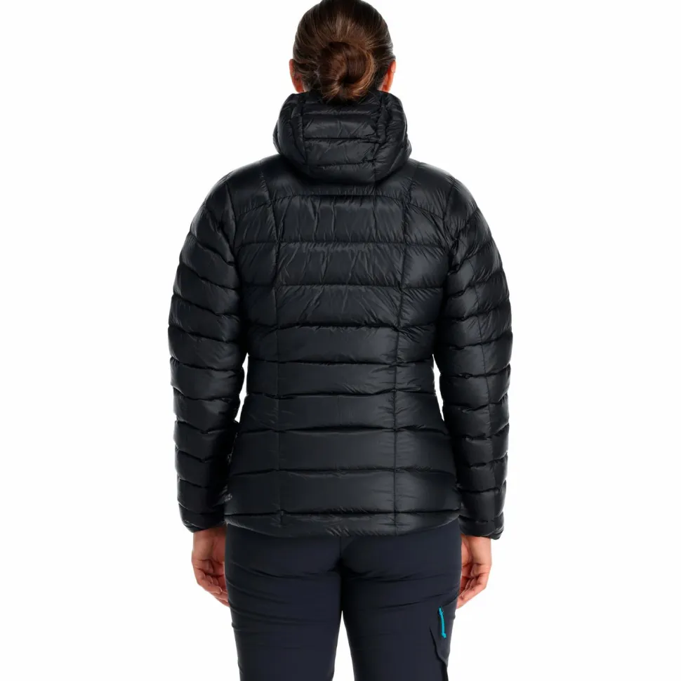 Die Women’s Mythic Alpine Jacket von Rab sorgt für Unterstützung bei anspruchsvollsten Expeditionen. Dank der hocheffizienten und extrem bauschstarken Gänsedaunen mit 900 cuin sorgt die Jacke für eine perfekte Verbindung aus Isolation und Gewichtsreduktion. Die Daunen sind zudem mit einer Nikwax Imprägnierung versehen, welche sie unempfindlich gegen über Nässe und Verklumpen macht. Somit ist auch bei schlechter Witterung oder hoher Luftfeuchtigkeit eine hohe Isolationsleistung sichergestellt.