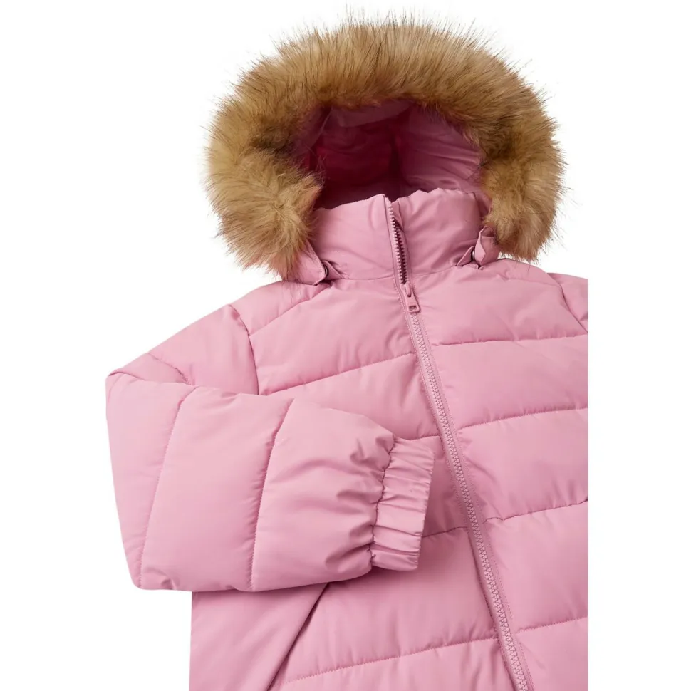 Das Design der Kid’s Luvia Jacke ist auf Praktikabilität ausgelegt. Der durchgehende Front-Reißverschluss erleichtert das An- und Ausziehen erheblich – ein Pluspunkt im stressigen Alltag. Die abnehmbare Kapuze mit Kunstfellbesatz bietet zusätzlichen Schutz vor Kälte und kann je nach Bedarf angepasst werden. Zwei Reißverschluss-Fronttaschen bieten sicheren Stauraum für kleine Schätze oder wichtige Utensilien unterwegs. Elastische Ärmelbündchen verhindern das Eindringen von kalter Luft und sorgen für einen guten Sitz der Ärmel. Diese cleveren Designelemente machen die Jacke zu einem praktischen Alltagsbegleiter.