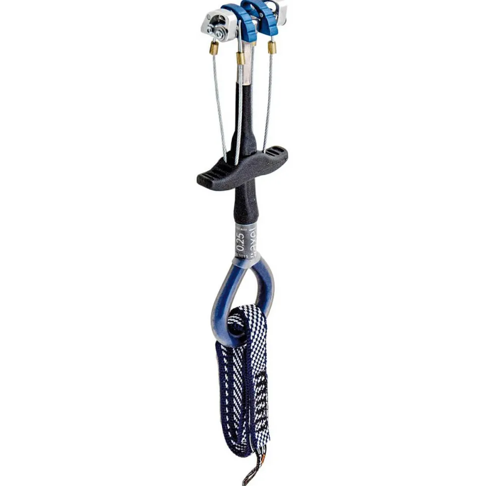 Das aktive Klemmgerät kommt mit einem einfachen Steg und einem Doppelachs-System. Durch diese Konstruktion ergibt sich ein geringes Gewicht, das sich vor allem in längeren Routen oder schweren Trad-Touren mit hohem Materialbedarf bezahlt macht. Durch die doppelte Achse ergibt sich eine maximale Reichweite der einzelnen Klemmsegmente. Die Dyneema-Schlinge ist doppelt gelegt und lässt sich bei Bedarf verlängern, um den Seilverlauf zu begradigen und zu verhindern, dass der Cam durch Seilbewegungen im Riss wandert. Super Handhabung, genialer Preis – mit dem Axel Cam bist du abseits ausgetretener Pfade unterwegs!