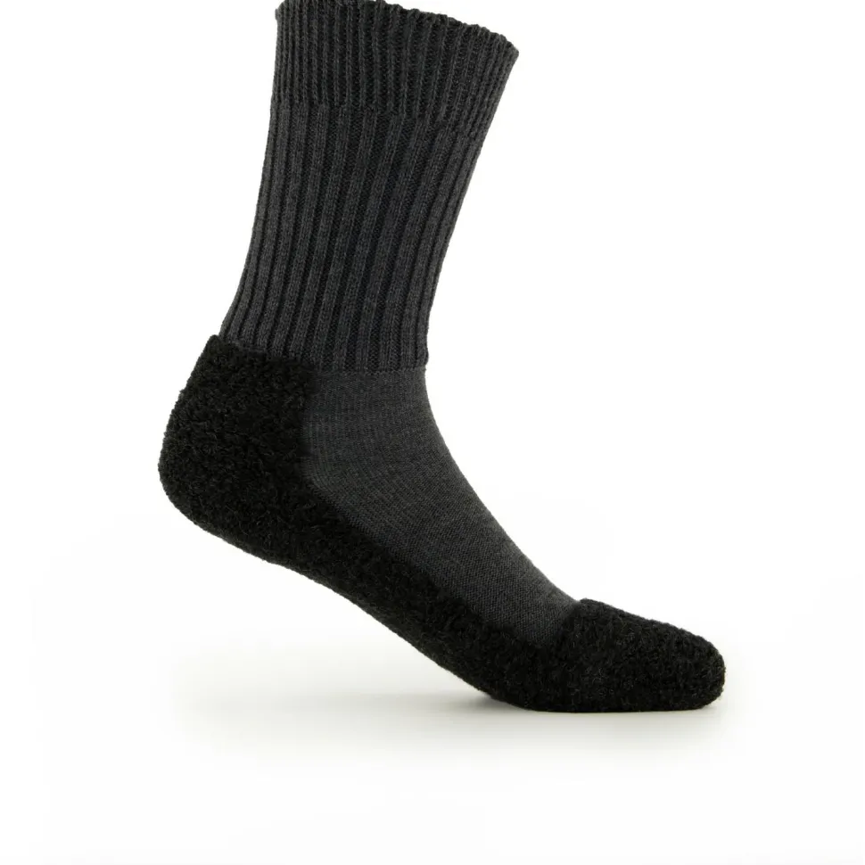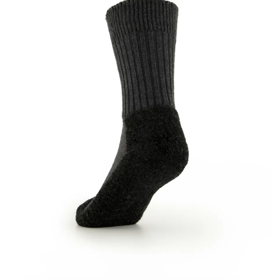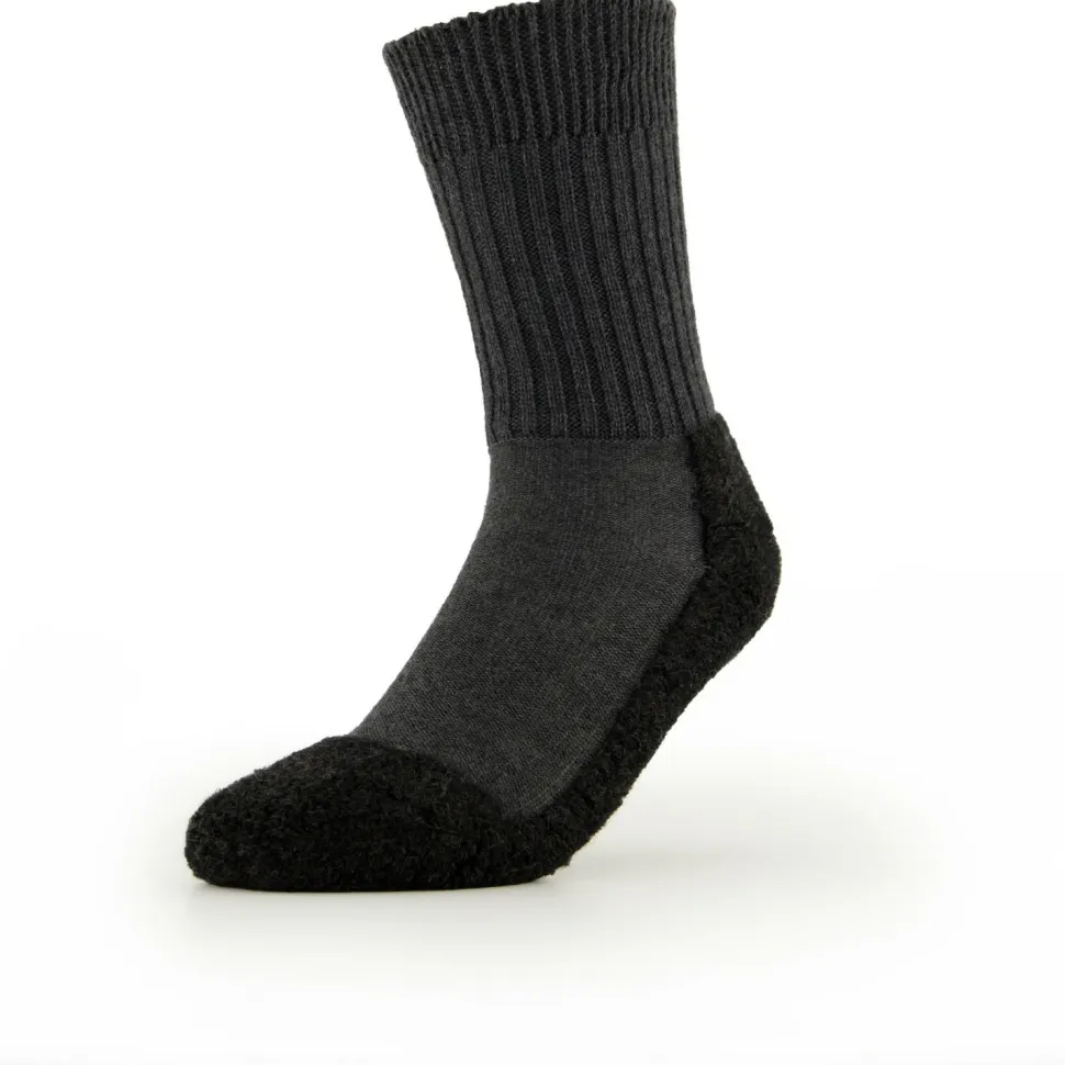 Super weich und ideal für Lederschuhe – die Rohner Original Trekkingsocken! Durch das gerippte Bündchen mit der weichen Abschlusskante liegen die Socken bequem an der Wade an. So schneidet nichts ein und die Socken verrutschen nicht! Im Fußbereich sorgt weicher Plüsch dafür, dass die Socken abriebfest sind und gut isolieren. Das Material aus Schurwolle passt ideal zu Lederschuhen, da es Reibung vermindert und Druckstellen verhindern kann. Die Original Trekkingsocken sorgen nicht nur auf Wanderungen oder Schneeschuhtouren für Tragekomfort, sondern passen auch hervorragend in alltagstaugliche Schuhe mit Lederfutter! Achtung: für die Socken gibt es eine eigene Größentabelle, die von der Standard-Tabelle des Herstellers abweicht.
