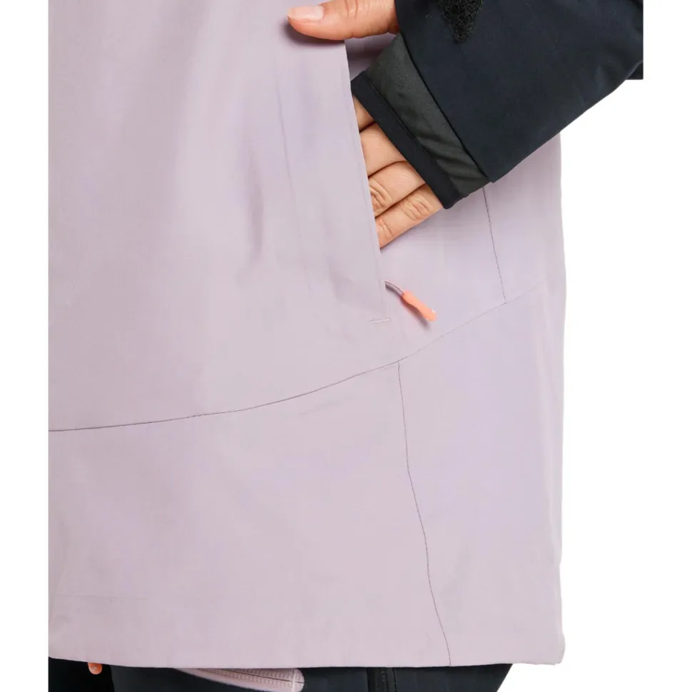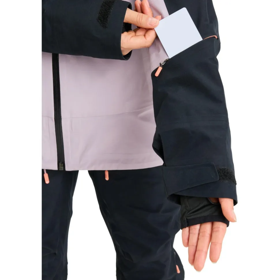 Im unteren Bereich der Women’s GORE-TEX Lunalite 3L von Roxy ist ein Schneefang integriert. Bei tiefem Pulverschnee oder dem ein oder anderen Sturz kann hier kein Schnee eindringen. Die Ärmelbündchen sind verstellbar und ermöglichen so eine optimale Anpassung mit den Handschuhen. Die helmtaugliche Kapuze schützt den empfindlichen Kopfbereich vor dem Wetter und hält die Ohren warm, wenn es windet.