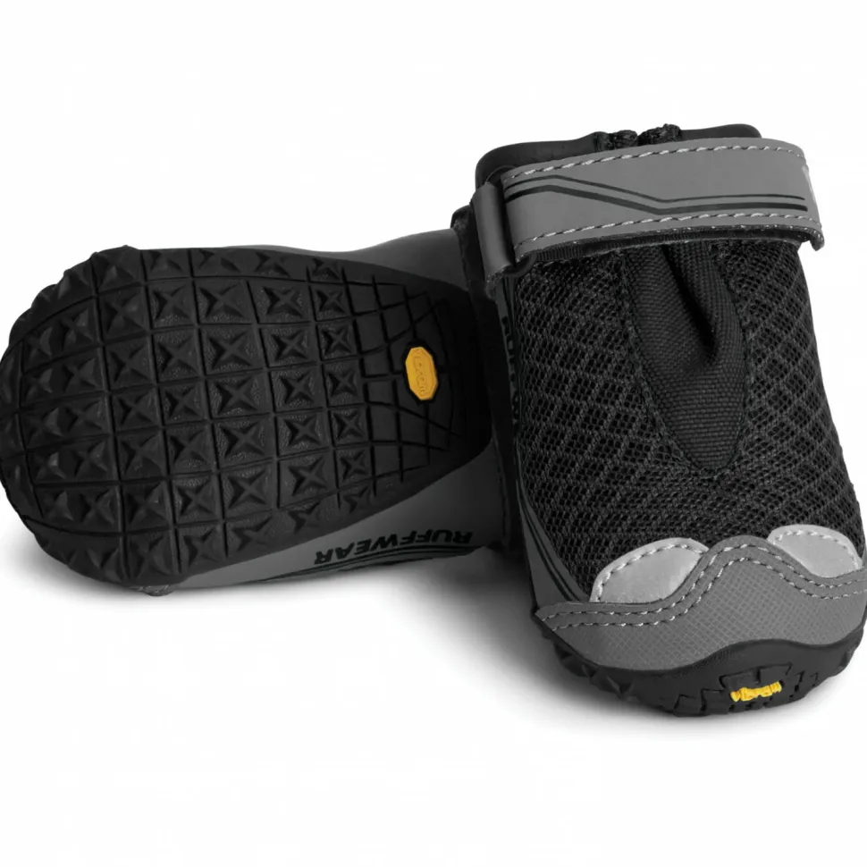 Schutz für Hundepfote in gefährlichem Gelände – die Grip Trex von Ruffwear sind der ideale Schutz vor spitzen oder scharfkantigen Steinen, Nadeln oder zu warmen Untergründen. Die Sohlen aus hochwertigem Vibram Gummi bieten perfekten Grip und sicheren Halt auf allen Wegen. Die Klettverschlüsse halten die Schuhe optimal an den Pfoten.
