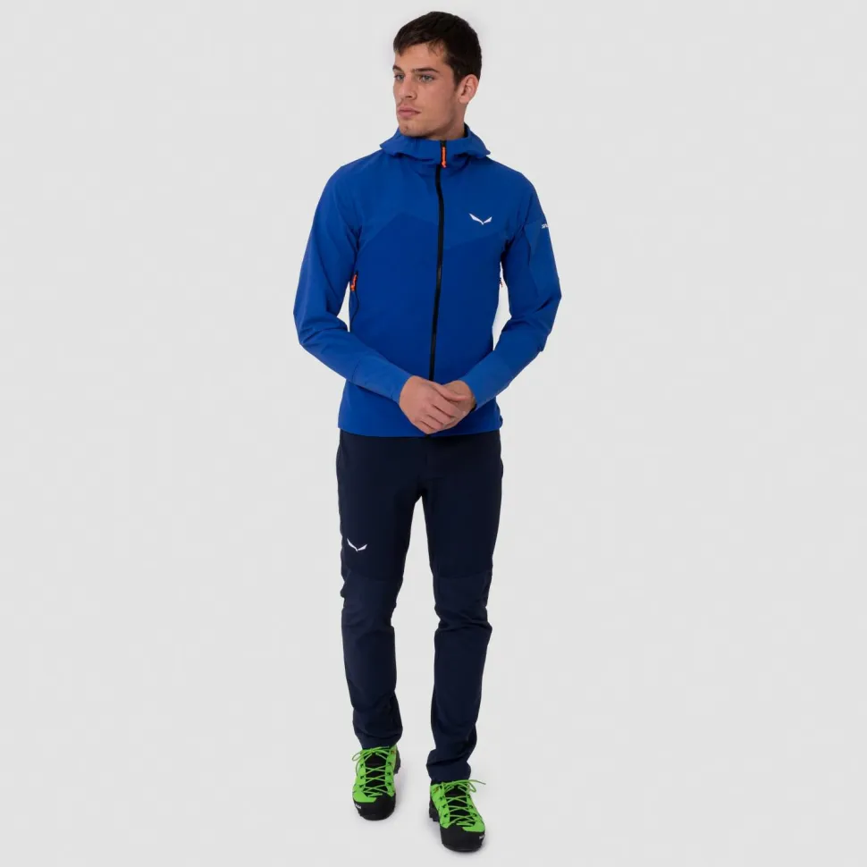 Sobald Du Dich auf Mehrseillängentouren begibst, ist zuverlässiger Schutz unerlässlich! Die Softshelljacke Agner DST Jacket von Salewa bietet mit ihrem wind- und wasserabweisenden Material einen soliden Wetterschutz. Dank elastischen Einsätzen und einer speziellen Unterarm-Konstruktion verrutscht die Jacke beim Klettern nicht und gibt Dir die optimale Bewegungsfreiheit. Die vorgeformte Kapuze und die Saumregulierung optimieren die Passform. Reduzierte Nähte sorgen für einen schlichten Look. Ideal für alpines Gelände!