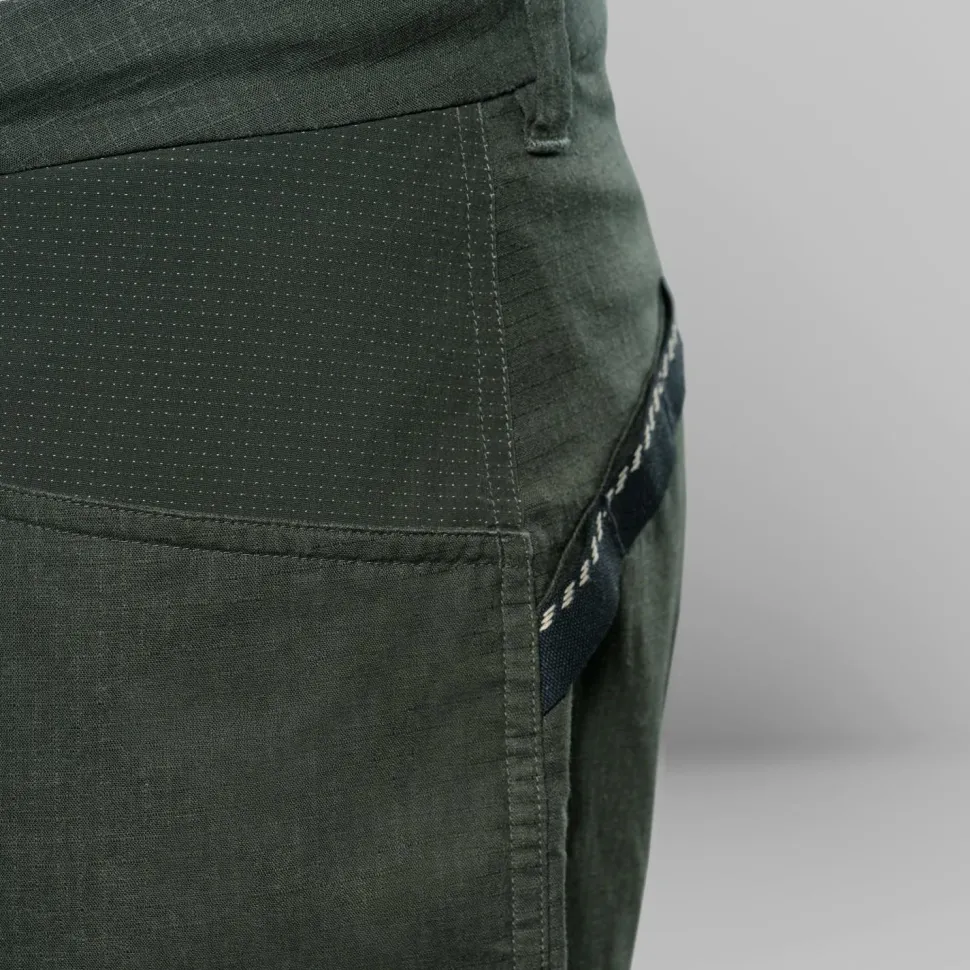 Funktionalität wird bei den Agner Hemp Ripstop Shorts großgeschrieben. Mit zwei Fronttaschen und einer Seitentasche hast Du ausreichend Stauraum für all die kleinen Dinge, die Du beim Klettern oder in der Freizeit griffbereit haben möchtest. Der integrierte Bürstenhalter ist ein praktisches Extra für alle Kletterer, die ihre Ausrüstung stets zur Hand haben wollen. Diese durchdachten Details erhöhen die Praktikabilität der Shorts sowohl im Alltag als auch beim Sport.