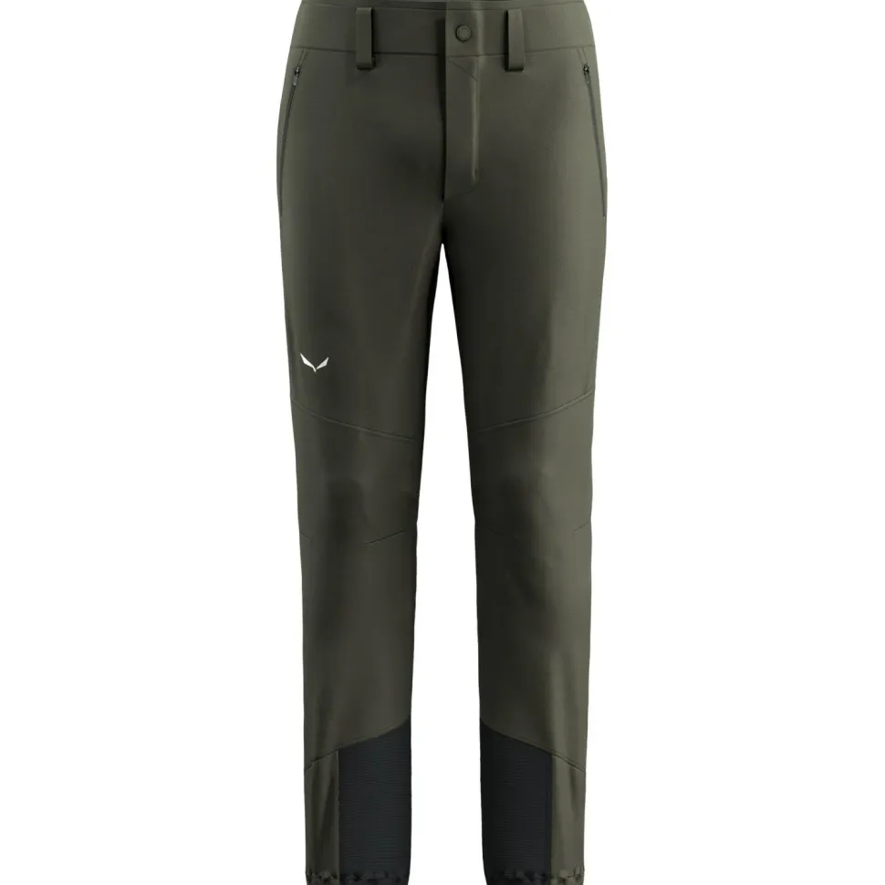 Die Agner Orval 3 DST Pants von Salewa eignet sich ideal zum Alpinklettern, für Hochtouren sowie zum Skitouren gehen im Gelände. Die Tourenhose ist an den Beinabschlüssen mit abriebfestem Material verstärkt, um gegen Beschädigungen durch Skikanten oder Steigeisen zu schützen. Integrierte Gürtelschlaufen am Hüftbund und insgesamt drei Reißverschlusstaschen lassen keine Wünsche offen. Durch den bequemen Schnitt engt Dich Softshellhose beim Bergsteigen nicht ein und sorgt beim Klettern für viel Bewegungsfreiheit.
