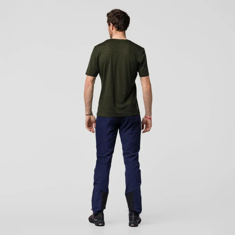 Zum Teil kommen recycelte Fasern zum Einsatz und die Herstellung ist bluesign approved. Die Tourenhose ist aus Durastretch Funktionsgewebe hergestellt. Das elastische 4-Wege Stretchgewebe passt sich bei jeder Bewegung an Deine Beine an. Durch das stark windabweisende Gewebe und die wasserabweisende Imprägnierung ist die Salewa Agner Orval 3 DST Pants die erste Wahl für Deine nächste Bergtour.