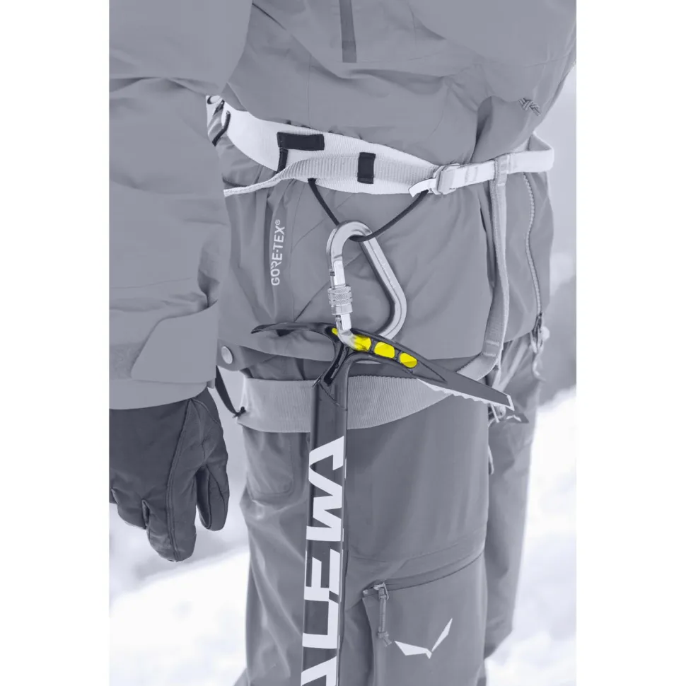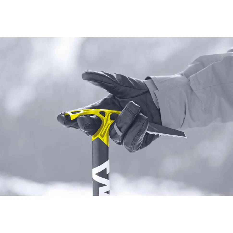 Die Salewa Alpine-X Ice Axe ist ein leichter Hybrid-Eispickel zum Bergsteigen. Dank seiner ergonomischen Form liegt er sowohl beim Auf- als auch beim Abstieg angenehm in der Hand. Seine starke, aggressive 3mm Stahlklinge durchdringt Schnee und Gletschereis besonders leicht. Mit geschärfter Schaufel für ein effektives Stufenschlagen und Leistenhacken sowie einem geradem Schaft für einfaches Stecken und sicheren Standbau (per T-Anker) eignet sich die Alpine-X Ice Axe somit bestens für klassische Hochtouren jeder Art. Die Pickelspitze ist bei Bedarf zudem austauschbar und die Öffnungen am Pickelkopf sowie dem unteren Schaftende dienen zum praktischen Einhängen am Karabiner. Der Eispickel ist gleichzeitig kompatibel mit der selbstsichernden Salewa Handauflage.