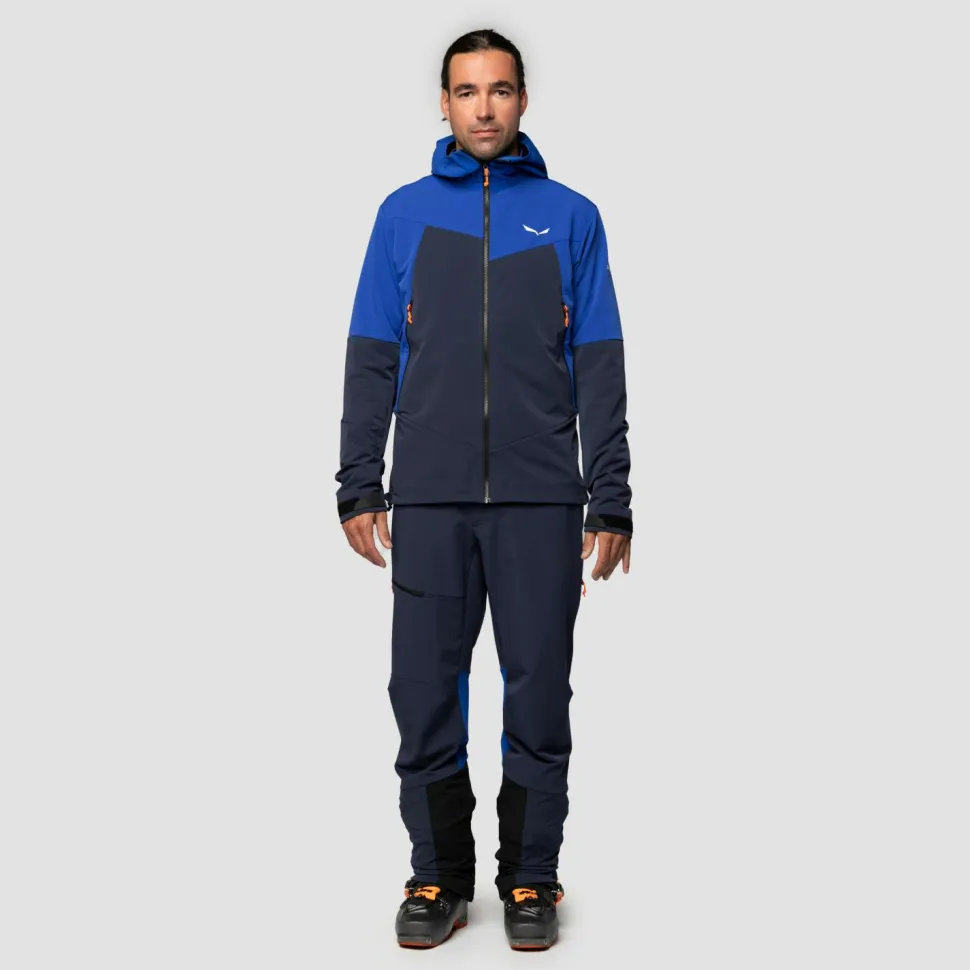 Bietet einen soliden Wetterschutz mit Tragekomfort, die Softshelljacke Sella DST Jacket von Salewa! Der Materialmix ist wind- und wasserabweisend und nebenbei auch atmungsaktiv. Kommst Du ins Schwitzen wird die Feuchtigkeit zügig nach außen abtransportiert. Die spezielle Unterarm-Konstruktion verhindert, dass die Jacke beim Klettern verrutscht. Ergonomisch geformte Ärmel geben Dir eine gute Bewegungsfreiheit. Ein Allrounder für Alpinisten!