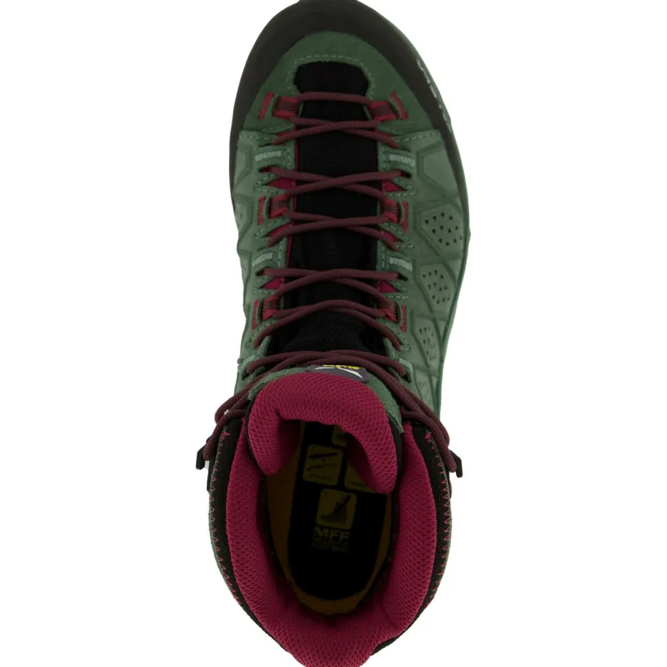 Diese robusten Wanderschuhe meistern dank verstärkter Ferse und gummierter Zehenschutzkappe auch anspruchsvolle Bergtouren ohne Probleme – die Women’s Alp Trainer 2 Mid GTX von Salewa. Wanderungen und Trekkingtouren in den Bergen gehören ebenfalls zum bevorzugten Einsatzgebiet.