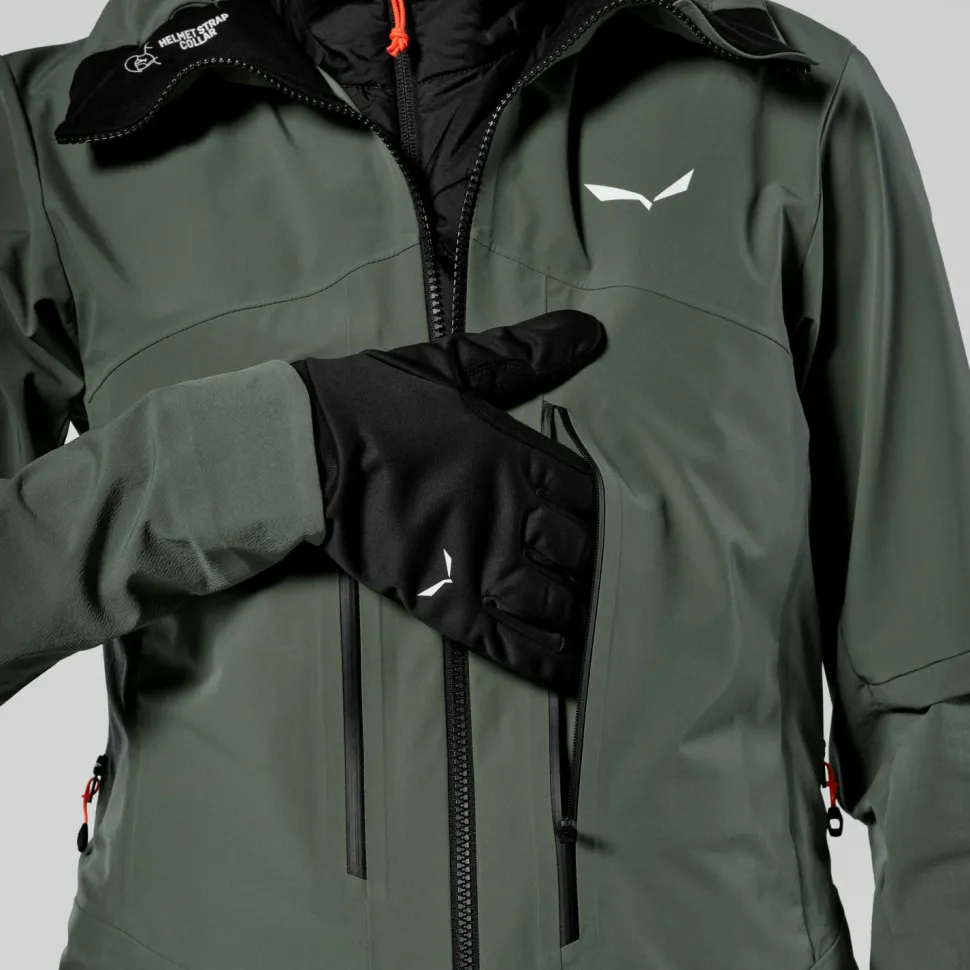Die Women’s Ortles DST/SW Jacket Softshelljacke von Salewa liegt weich und bequem am Körper und bietet eine angenehme Luftzirkulation. Hierfür sorgen atmungsaktive Materialien und die Möglichkeit, mit zwei Unterarm-Reißverschlüssen manuell frische Luft ins Innere der Jacke zu befördern. Wind- und wasserabweisende Eigenschaften halten bei wechselhaftem Wetter die Elemente aus dem Inneren der Jacke fern, wodurch es hier trocken und gemütlich warm bleibt.
