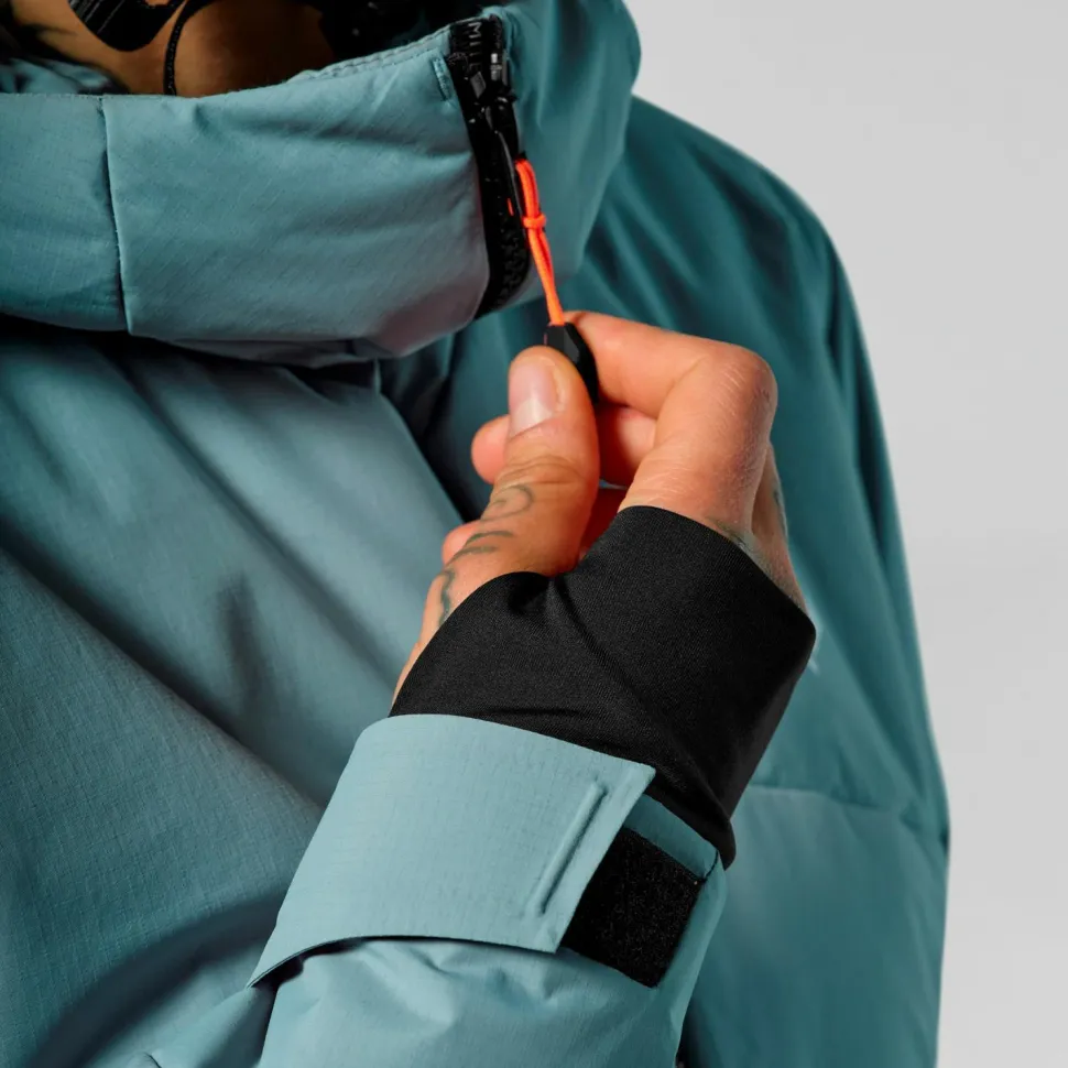 Gerade bei rauen Bedingungen zählt jedes Detail – und hier punktet die Women’s Ortles TW Air HD mit durchdachten Features. Powertex-Verstärkungen an besonders beanspruchten Stellen wie Schultern, Kapuze und Ärmeln schützen vor Abrieb durch Fels oder Rucksackträger. Die helmkompatible Kapuze sitzt auch bei Wind stabil, während der Zwei-Wege-Reißverschluss den Zugriff auf das Sicherungsgerät erleichtert – ein echtes Plus beim Standplatz. Auch die Ärmelabschlüsse sind clever gelöst: Sie lassen sich mit Klett regulieren und sind mit elastischen Innenbündchen mit Daumenschlaufen ausgestattet.