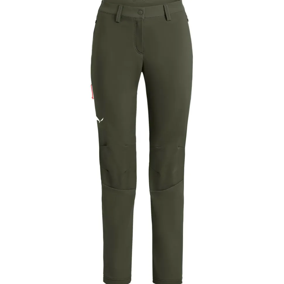 Der perfekte Begleiter zum Wandern und Trekken. Die Women’s Puez Orval Tourenhose von Salewa passt sich dank ihrer beweglichen Eigenschaften perfekt an den Körper an und schränkt diesen auch bei sportlich anspruchsvollen Bewegungen in keiner Hinsicht ein. Der elastische Hüftbund sitzt angenehm fest und lässt sich mit einem Druckknopf verschließen. An den Beinenden sind Reißverschlüsse angebracht. So kann die Hose an das Schuhwerk angepasst werden. Bei schlechten Wetterbedingungen kommen die wind- und wasserabweisenden Eigenschaften zum Tragen. Diese beiden Störenfriede werden von den hochwertigen Materialien an einem Eindringen gehindert. So bleibt es im Innern der Hose angenehm trocken und gemütlich. Die vorgeformten Knie sorgen zudem für einen hohen Tragekomfort und das auch bei sportlich anspruchsvollen Einsätzen.