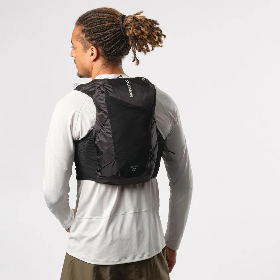 Auf langen Läufen ist der Trailrunningrucksack Active Skin 12 Set von Salomon der ideale Partner! Die Materialien sind weich und atmungsaktiv, die Passform dank verstellbaren Brustgurten äußerst sicher und die Brusttaschen ermöglichen stets einen einfachen Zugriff auf Deine Softflasks. Auch Riegel und Gels, sowie Wechselklamotten finden Platz im Rucksack. Ideal für Ultras!