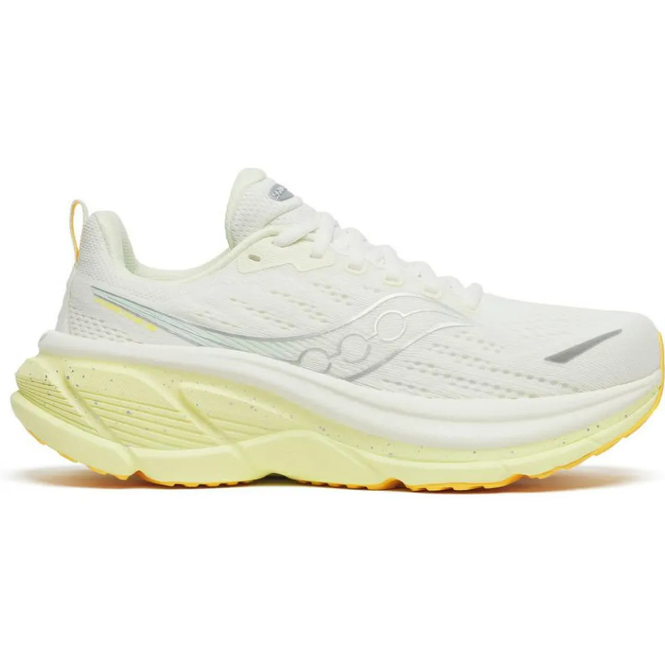 Mit dem Women’s Hurricane 25 von Saucony bist Du bestens für Dein nächstes Straßenlauf-Abenteuer gerüstet. Die Kombination aus der bewährten PWRRUN-Zwischensohle und dem innovativen PWRRUN PB-Material sorgt für ein Laufgefühl, das Komfort und Dynamik vereint. Dank einer Sprengung von 6 mm und der großzügigen Stapelhöhe von 38 mm genießt Du eine optimale Druckverteilung – ideal, wenn Du auf Asphalt unterwegs bist und Wert auf ein besonders weiches Abrollen legst. Die Center Path Technologie sowie der PWRRUN FRAME unterstützen Dich dabei, stabil und sicher Schritt für Schritt voranzukommen.