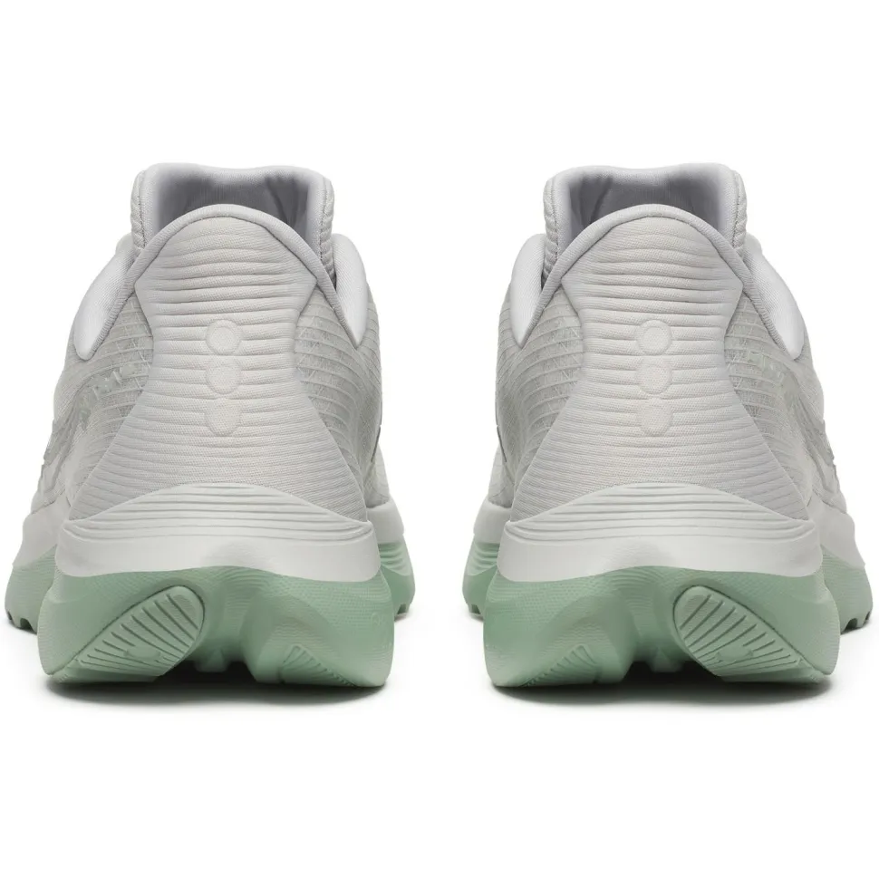 Die Women’s Kinvara 16 von Saucony bringt mit ihrer PWRRUN-Zwischensohle eine ausgewogene Mischung aus Dämpfung und Reaktionsfreude auf die Straße. Das bedeutet für Dich: Jeder Schritt fühlt sich angenehm federnd an, ohne dass Du dabei an Tempo verlierst – perfekt für schnelle Trainingsrunden am Morgen oder längere Einheiten nach Feierabend. Die moderate Sprengung von 4 Millimetern unterstützt Deinen natürlichen Laufstil und sorgt dafür, dass Du dynamisch und effizient unterwegs bist. Mit einer Stapelhöhe von 29 Millimetern genießt Du ein gutes Maß an Bodennähe, während die Gummi-Laufsohle Dir auf Asphalt zuverlässigen Grip bietet – so kannst Du Dich ganz auf Deinen Lauf konzentrieren.