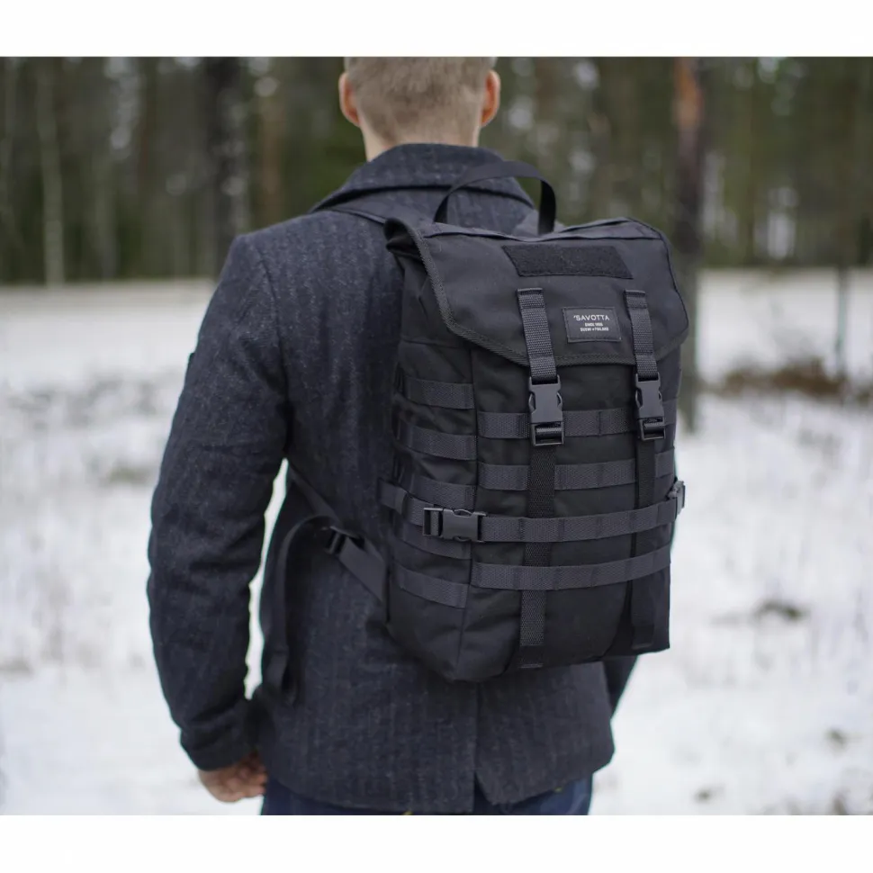Stabiler Partner für abenteuerlustige Aktive: der Jääkäri S 20 Wanderrucksack von Savotta! Dieses robuste Multitalent kommt mit seinem beständigen Corduragewebe und dem schlanken Design auch im dichten Unterholz oder beim Kraxeln gut voran. Durch die seitlichen Kompressionsriemen kann die Ladung dabei eng an den Rücken gebracht werden.