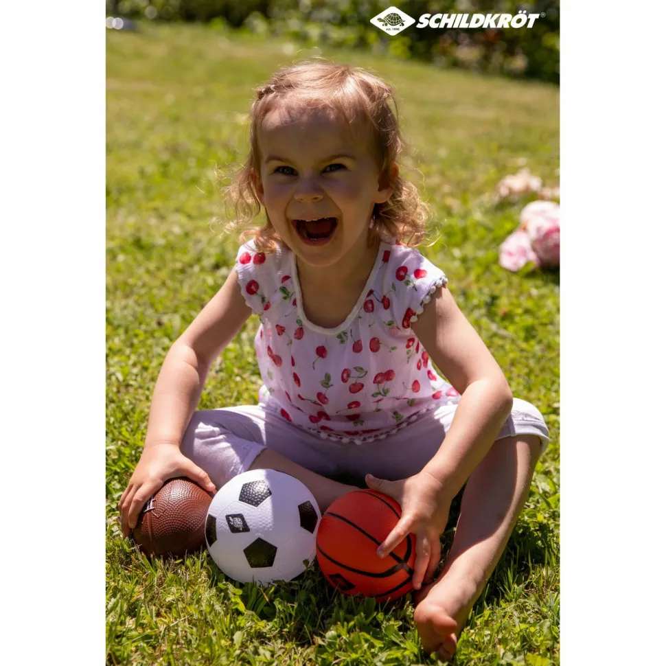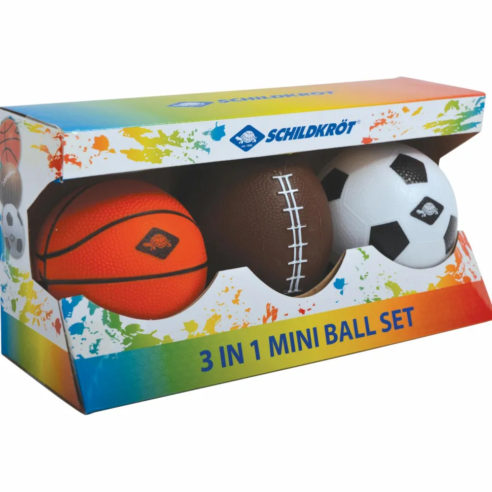 Einen Fußball, einen Football und einen Basketball enthält das 3 in 1 Mini Balls Set von Schildkröt!Die Bälle (50 g, Ø 11 cm) sind für alle Altersgruppen geeignet und können auch im Wasser verwendet werden.Der Härtegrad der Bälle kann beim aufpumpen geändert werden.